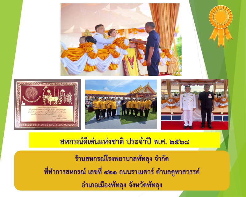 ** สหกรณ์ดีเด่นแห่งชาติ ประจำปี พ.ศ. 2568 ร้านสหกรณ์โรงพยาบาลพัทลุง จำกัด