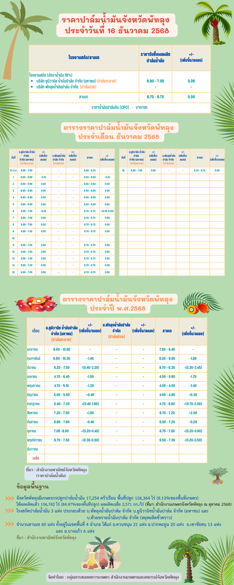 ราคาปาล์มน้ำมันประจำวันที่ 16 ธันวาคม 2568
