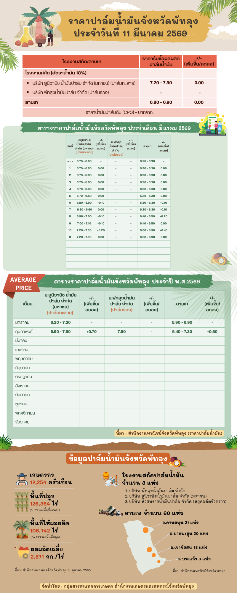 ราคาปาล์มน้ำมันประจำวันที่ 11 มีนาคม 2569