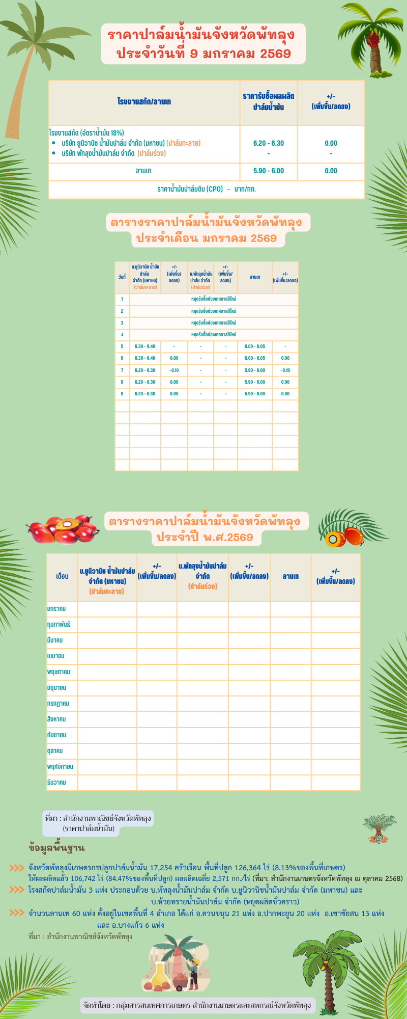 ราคาปาล์มน้ำมันประจำวันที่ 9 มกราคม 2569
