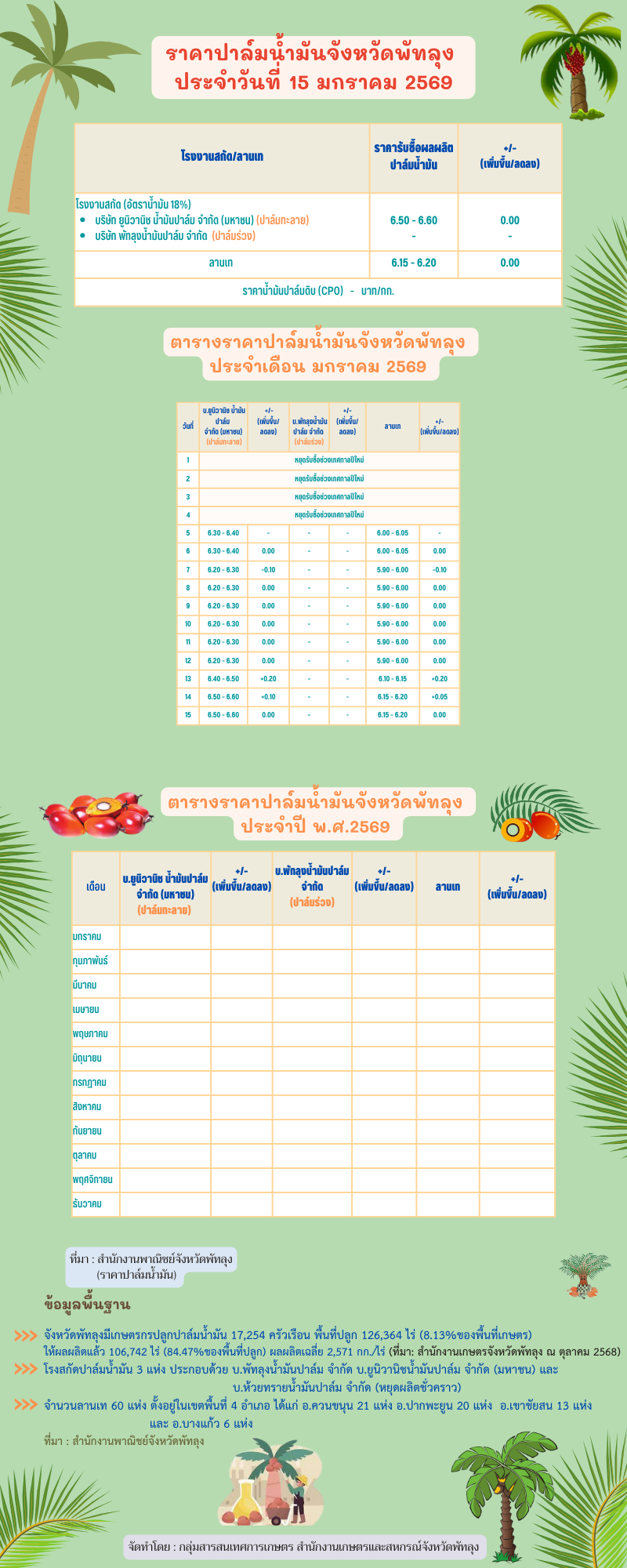 ราคาปาล์มน้ำมันประจำวันที่ 15 มกราคม 2569