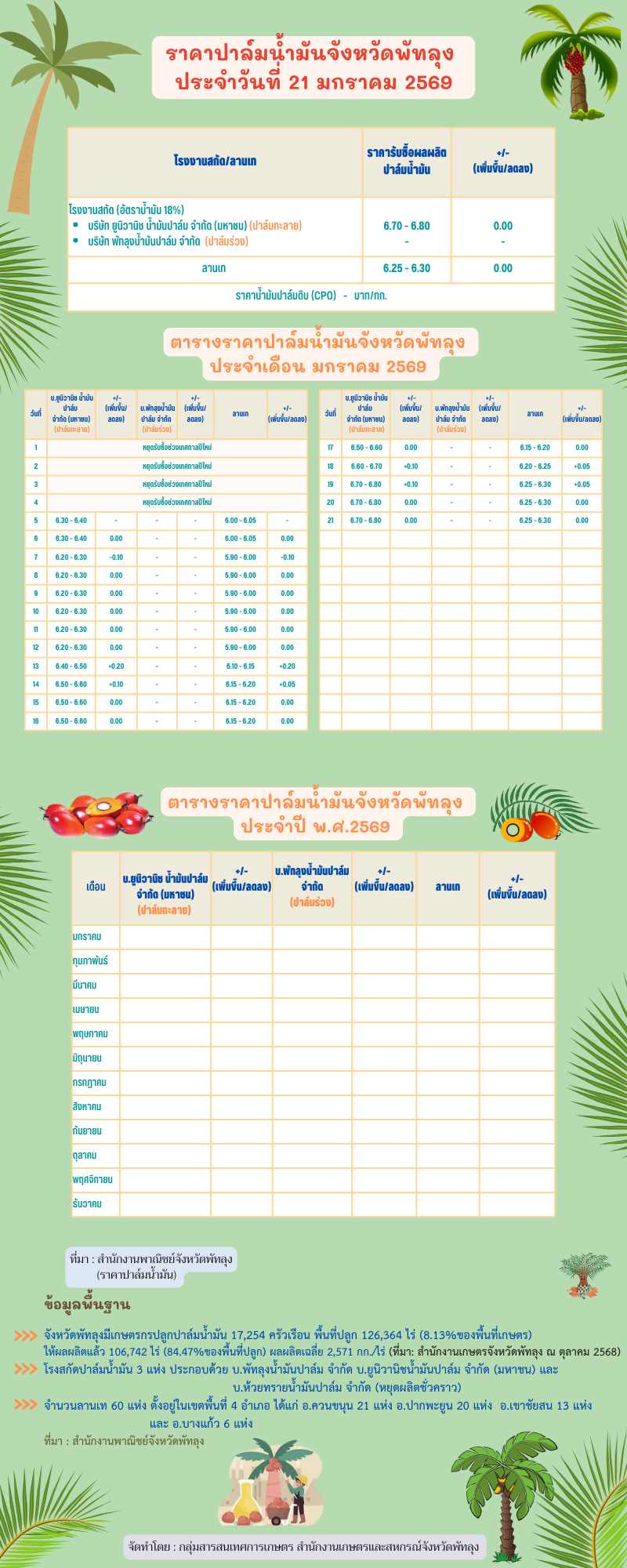 ราคาปาล์มน้ำมันประจำวันที่ 21 มกราคม 2569