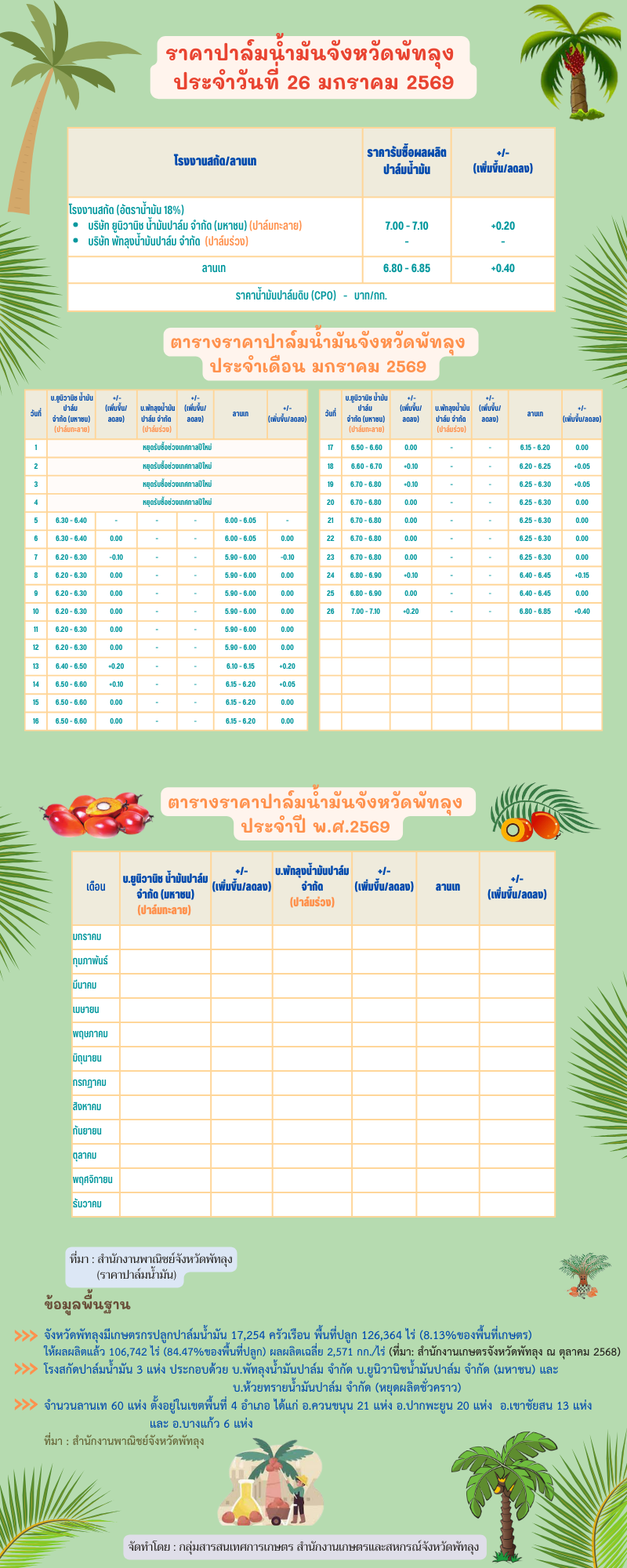 ราคาปาล์มน้ำมันประจำวันที่ 26 มกราคม 2569