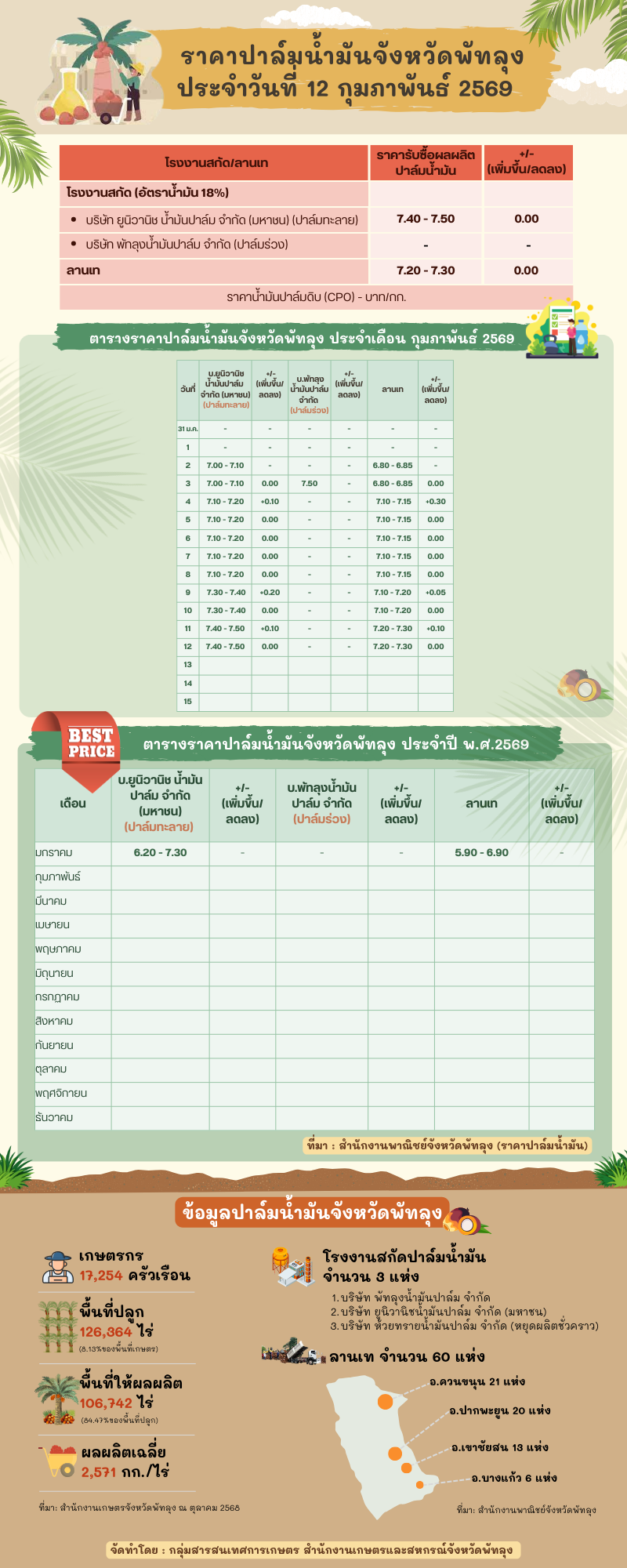 ราคาปาล์มน้ำมันประจำวันที่ 12 กุมภาพันธ์ 2569