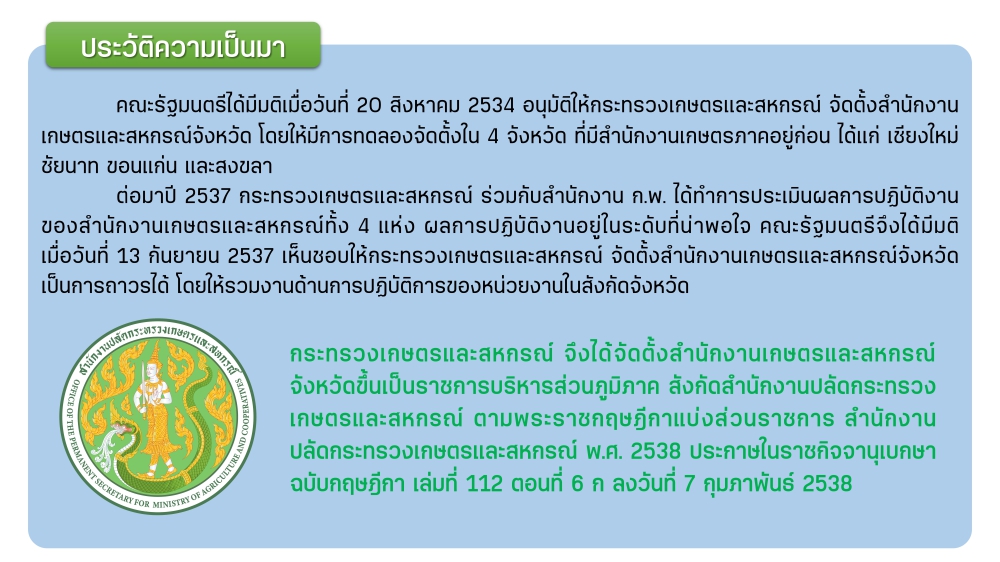 ความเป็นมาสำนักงานเกษตรและสหกรณ์จังหวัด