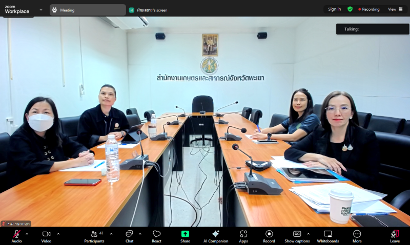 วันที่ 11 ธันวาคม 2568 เวลา 13.30 น. ณ ห้องประชุมสำนักงานเกษตรและสหกรณ์จังหวัดพะเยา ชั้น 4 ศาลากลางจังหวัดพะเยา นางคัทลียา สิงหศิริ เกษตรและสหกรณ์จังหวัดพะเยา พร้อมด้วยบุคลากรสำนักงานเกษตรและสหกรร์จังหวัดพะเยา ร่วมประชุมเพื่อติดตามความคืบหน้าการจัดงานมหกรรมการเกษตรและท่องเที่ยวถนนสายดอกไม้งามริมกว๊านพะเยา ซึ่งเป็นส่วนหนึ่งของงานหลัก "Amazing Thailand Phayao Countdown Flora Fest 2026" ที่จะจัดขึ้นระหว่างวันที่ 28 - 31 ธันวาคม 2568 ณ บริเวณริมกว๊านพะเยาและลานอนุสาวรีย์พ่อขุนงำเมือง อำเภอเมืองพะเยา จังหวัดพะเยา โดยมีนายวิณะโรจน์ ทรัพย์ส่งสุข ปลัดกระทรวงเกษตรและสหกรณ์ เป็นประธานการประชุม ผ่านระบบประชุมทางไกล Zoom Meeting