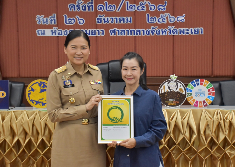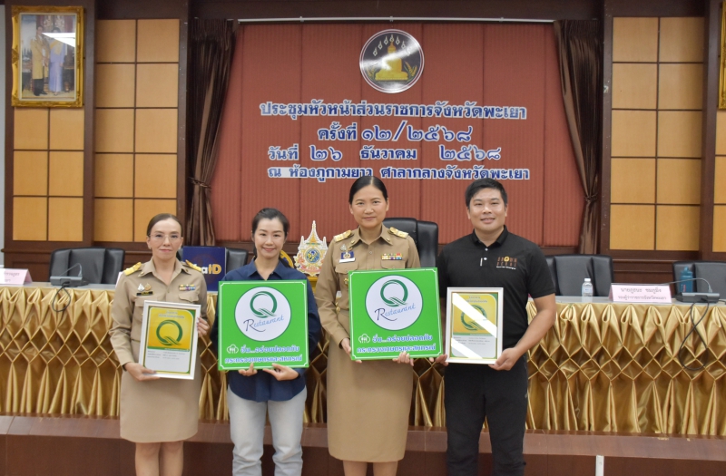 วันศุกร์ที่ 26 ธันวาคม 2568 เวลา 09.30 น. นางคัทลียา สิงหศิริ เกษตรและสหกรณ์จังหวัดพะเยา ได้จัดให้มีการมอบป้ายโครงการร้านอาหารวัตถุดิบปลอดภัยเลือกใช้สินค้า Q (Q Restaurant) ประจำปีงบประมาณ พ.ศ. 2568 จำนวน 2 แห่ง ได้แก่ 1) ร้านก๋วยเตี๋ยวเฮียน้อยอันเจริญ 168 และ 2) ร้าน Brownberry Coffee ในการประชุมคณะกรมการจังหวัดพะเยาฯ ประจำเดือน ธันวาคม 2568 ณ ห้องประชุมภูกามยาว ชั้น 5 ศาลากลางจังหวัดพะเยาโดยมีนางสาวอรอาภา โล่ห์วีระ ผู้ว่าราชการจังหวัดพะเยาให้เกียรติเป็นประธานในการมอบป้ายดังกล่าว