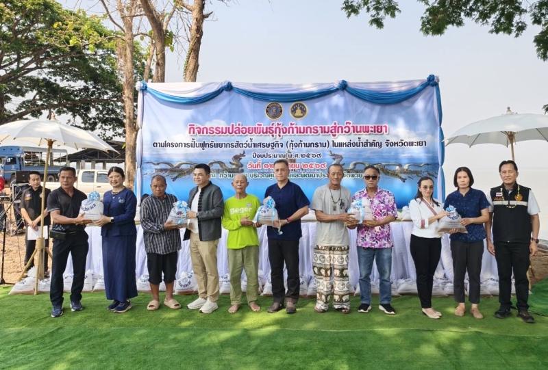 วันที่ 12 เมษายน 2569 เวลา 10.00 น. นางคัทลียา สิงหศิริ เกษตรและสหกรณ์จังหวัดพะเยา เข้าร่วมกิจกรรมปล่อยพันธุ์กุ้งก้ามกรามลงสู่กว๊านพะเยา ภายใต้โครงการฟื้นฟูทรัพยากรสัตว์น้ำเศรษฐกิจ (กุ้งก้ามกราม) ในแหล่งน้ำสำคัญของจังหวัดพะเยา ประจำปีงบประมาณ 2569 จำนวน 1,000,000 ตัว ซึ่งกิจกรรมครั้งนี้มีเป้าหมายเพื่อเพิ่มผลผลิตกุ้งก้ามกราม ซึ่งเป็นสัตว์น้ำเศรษฐกิจลงสู่แหล่งน้ำธรรมชาติ เพื่อเสริมความมั่นคงทางอาหาร สร้างอาชีพ สร้างรายได้ และยกระดับรายได้ให้กับพี่น้องชาวประมงและชุมชนในพื้นที่ โดยมีนางฐิติพร หลาวประเสริฐ อธิบดีกรมประมง เป็นประธานในกิจกรรมฯ ณ กว๊านพะเยา บริเวณศูนย์วิจัยและพัฒนาประมงน้ำจืดพะเยา โซน B ตำบลเวียง อำเภอเมืองพะเยา จังหวัดพะเยา