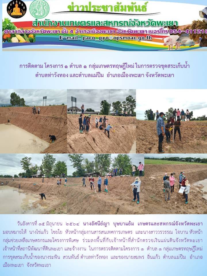การติดตามโครงการ 1 ตำบล 1กลุ่มเกษตรทฤษฎีใหม่ ณ วันที่ 15 มิถุนายน 2564