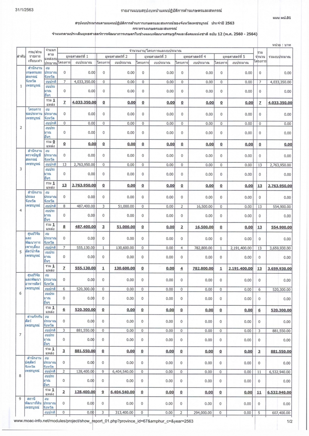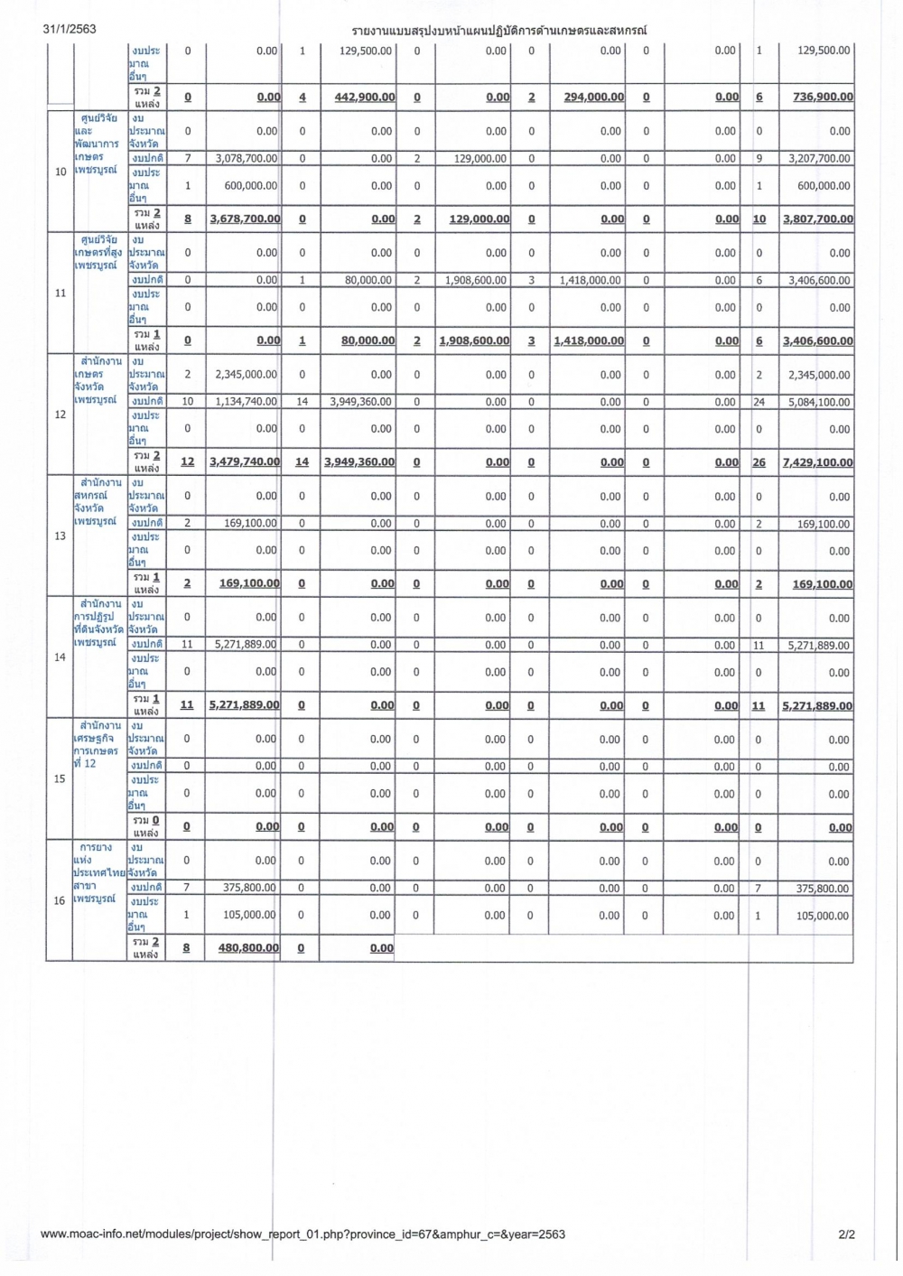 รายงานแบบสรุปงบหน้าแผนปฏิบัติการด้านการเกษตรและสหกรณ์ ประจำปี 2563 ของจังหวัดเพชรบูรณ์