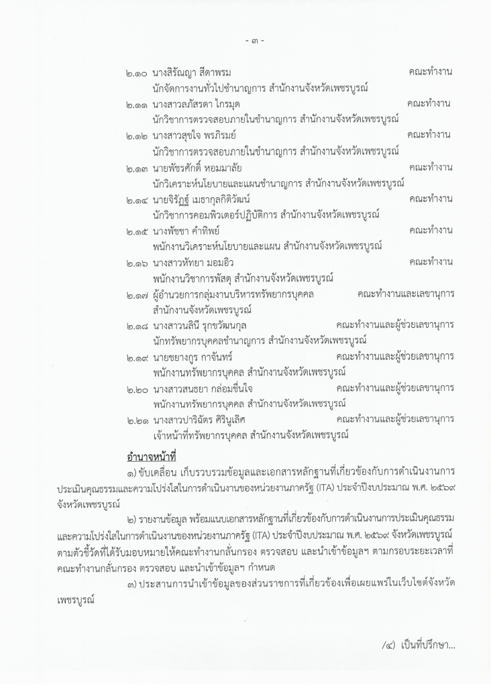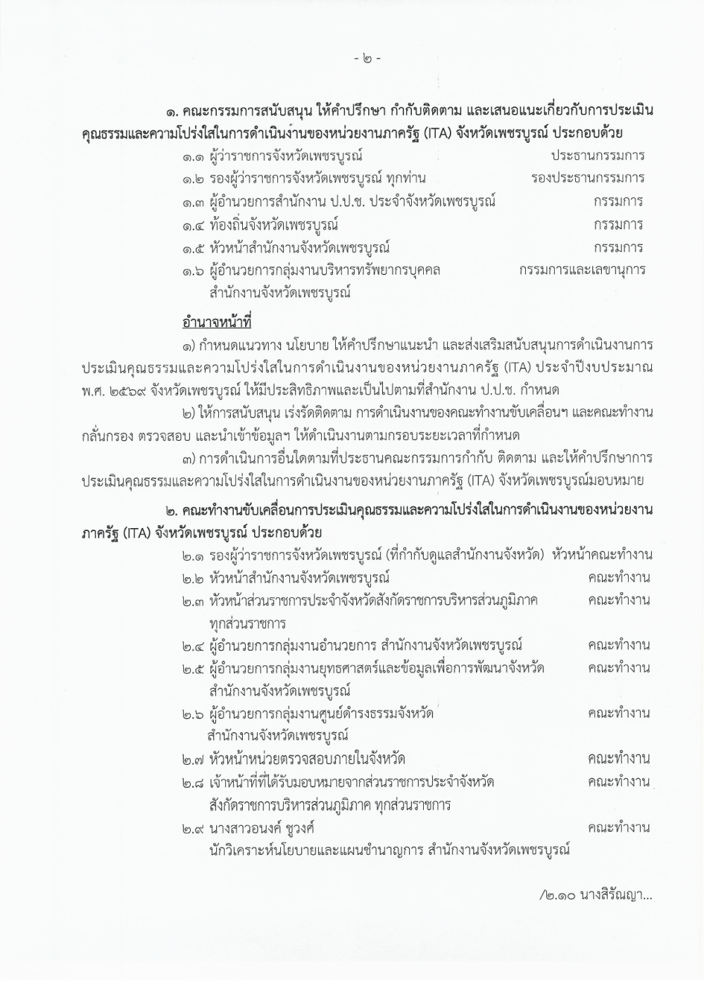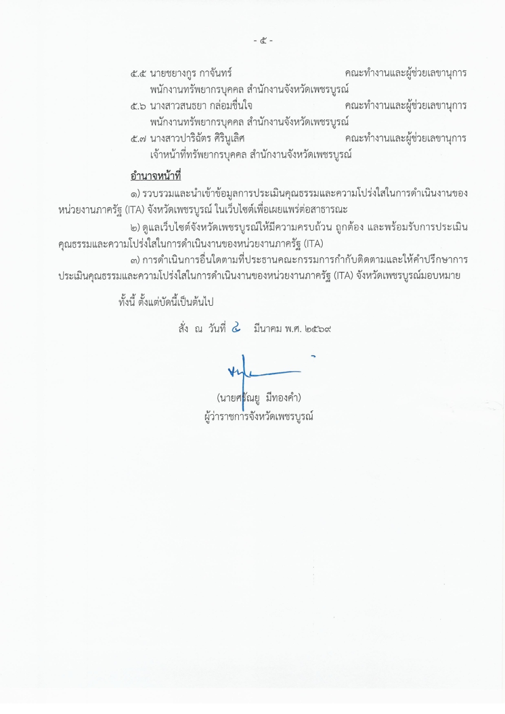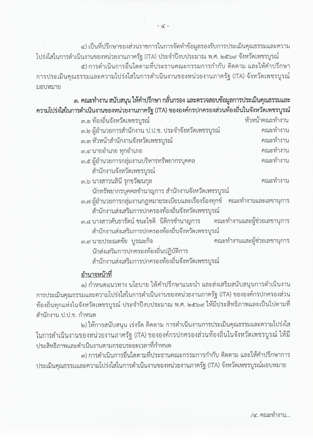 คำสั่งจังหวัดเพชรบูรณ์ ที่ 565/2569 ลงวันที่ 4 มีนาคม 2569 เรื่อง แต่งตั้งคณะกรรมการและคณะทำงานการประเมินคุณธรรมและความโปร่งใสในการดำเนินงานของหน่วยงานภาครัฐ (ITA) ประจำปีงบประมาณ พ.ศ.2569 จังหวัดเพชรบูรณ์
