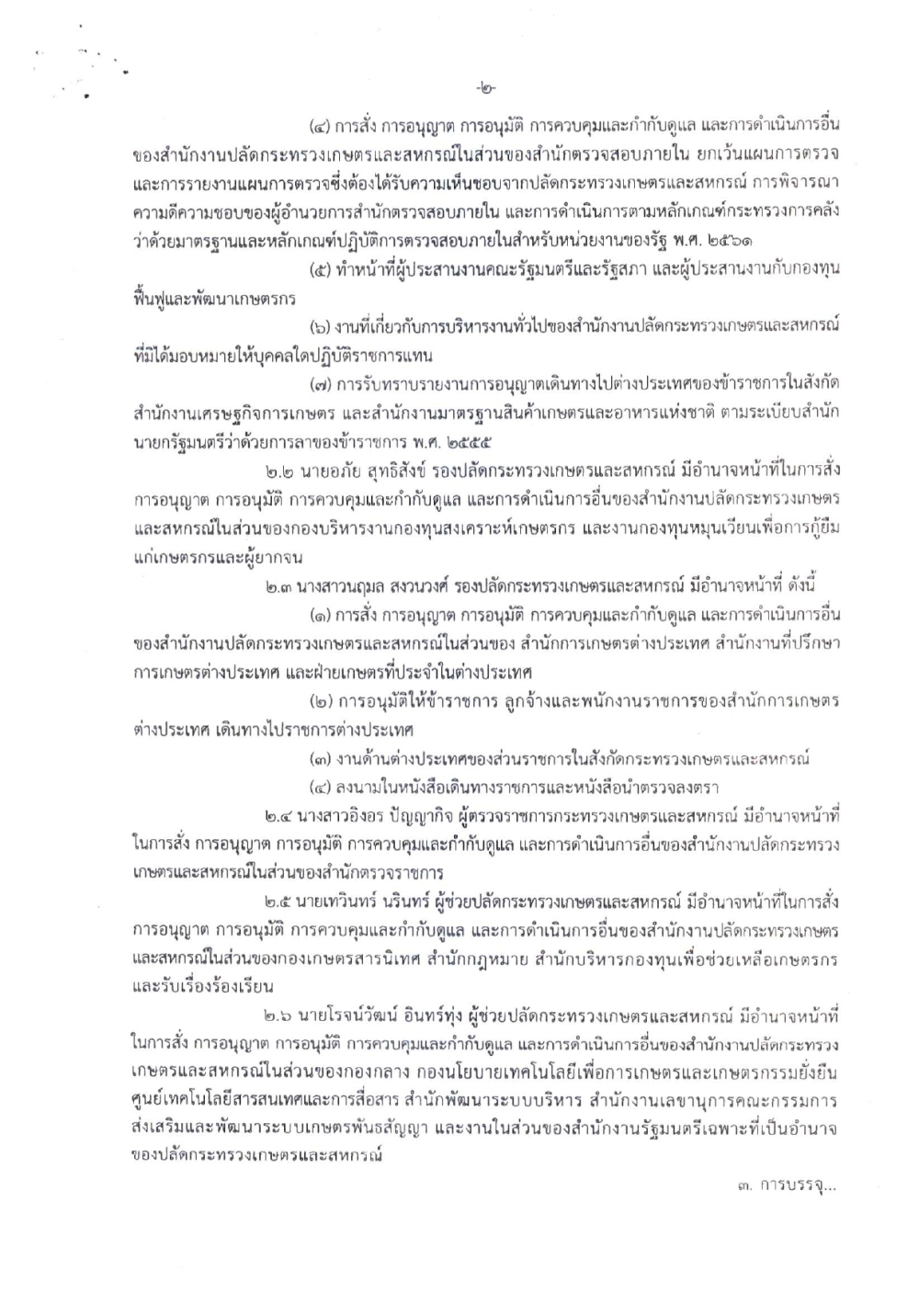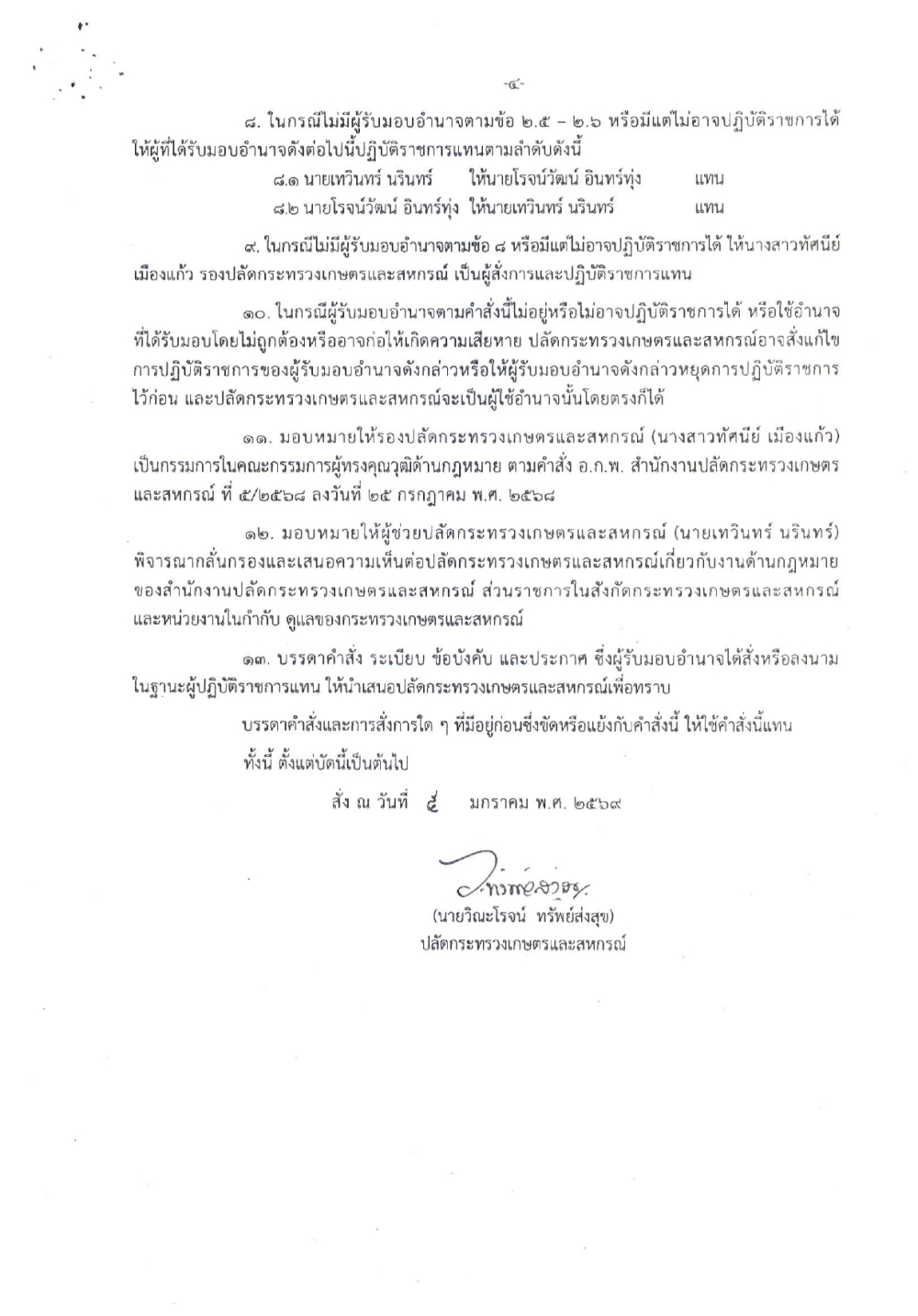 คำสั่งกระทรวงเกษตรและสหกรณ์ ที่ 2/2569 ลงวันที่ 5 มกราคม 2569 เรื่อง มอบอำนาจในการปฏิบัติราชการแทนปลัดกระทรวงเกษตรและสหกรณ์และมอบหมายให้ปฏิบัติราชการ