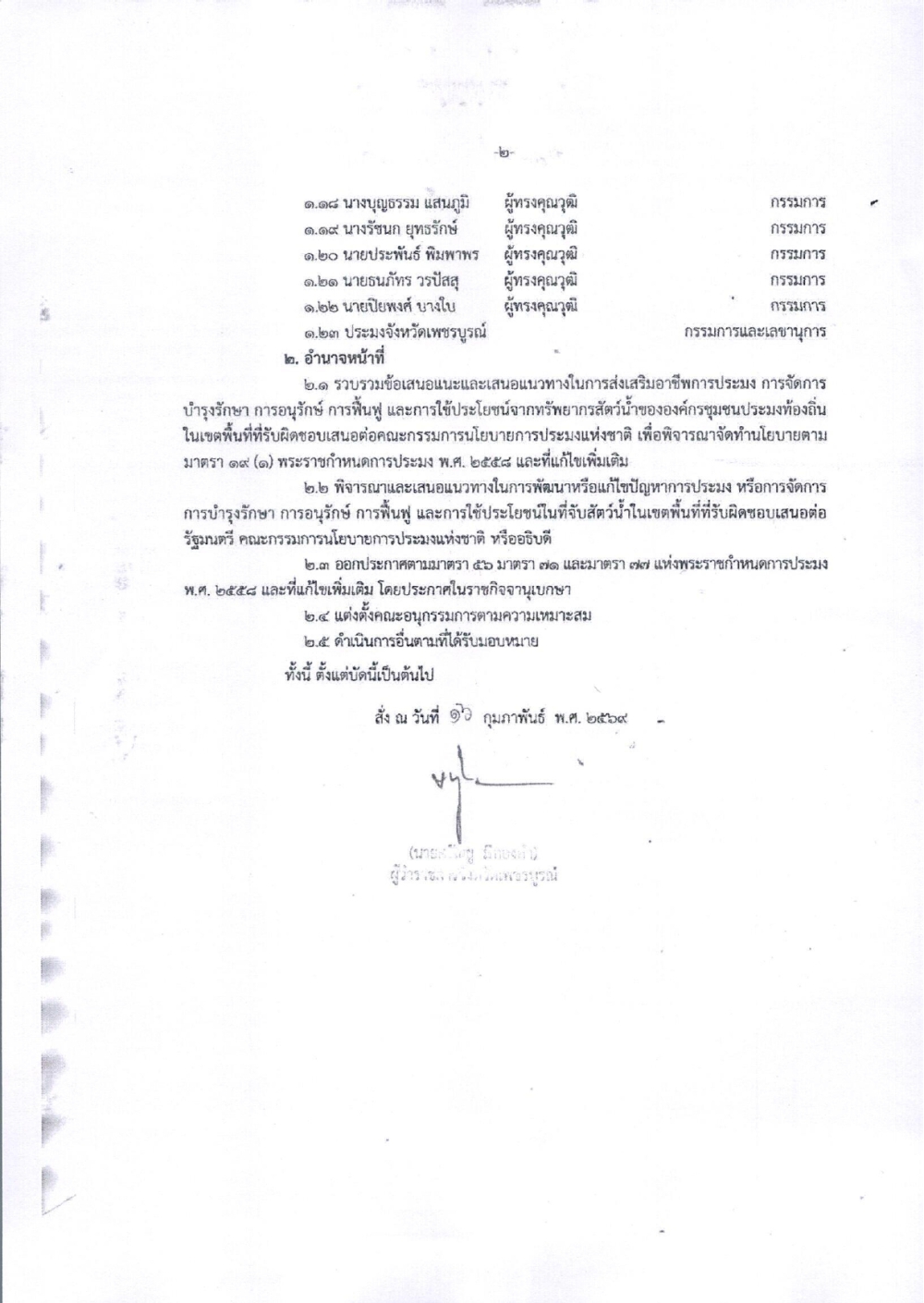คำสั่งจังหวัดเพชรบูรณ์ ที่ 440/2569 ลงวันที่ 16 กุมภาพันธ์ 2569 เรื่อง แต่งตั้งคณะกรรมการประมงประจำจังหวัดเพชรบูรณ์