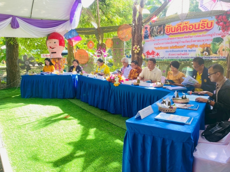 วันจันทร์ที่ 9 มิถุนายน 2568 เวลา 09.00 น. นางสาวศิริวรรณ เครือเล็ก เกษตรและสหกรณ์จังหวัดเพชรบุรี มอบหมายหัวหน้ากลุ่มยุทธศาสตร์พัฒนาการเกษตร นางสาวสุกัญญา จัตตุพรพงษ์ นักวิเคราะห์นโยบายและแผนชำนาญการพิเศษ ร่วมตรวจประเมินผลงานและตัดสินการคัดเลือกหมู่บ้านเข้มแข็ง ตามโครงการคัดเลือกหมู่บ้านเข้มแข็ง ตามแนวทาง "แผ่นดินธรรม แผ่นดินทอง" (หมู่บ้าน อยู่เย็น) ประจำปี 2568 เขตตรวจราชการที่ 4 กลุ่มจังหวัดภาคกลางตอนล่าง 2 เพื่อเป็นการสร้างแรงจูงใจและให้รางวัลแก่หมู่บ้านที่คณะกรรมการหมู่บ้าน มีผลงานโดดเด่นเป็นประจักษ์สามารถเป็นแบบอย่างในการปฏิบัติงาน ณ บ้านวัดกลางใต้ หมู่ 2 ตำบลบางกุ้ง อำเภอบางคนที จังหวัดสมุทรสงคราม โดยมีนายสราวุฒิ ธนาเจริญสกุล ผู้ตรวจราชการกรมการปกครอง เขต 4 เป็นประธาน