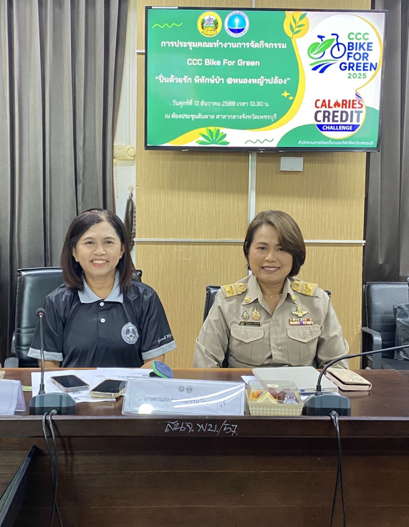 วันที่ 12 ธันวาคม 2568 นางสาวศิริวรรณ เครือเล็ก เกษตรและสหกรณ์จังหวัดเพชรบุรี พร้อมหัวหน้ากลุ่มสารสนเทศการเกษตร นางสาวสกลภัทร ไชยคำ นักวิเคราะห์นโยบายและแผนชำนาญการ ร่วมประชุมคณะทำงานการจัดกิจกรรม CCC Bike For Green “ ปั่นด้วยรัก พิทักษ์ป่า @ หนองหญ้าปล้อง” โดยมีวัตถุประสงค์ในการขับเคลื่อนการส่งเสริมการออกกําลังกาย และเล่นกีฬาอย่างสม่ําเสมอ ให้แก่ประชาชน รวมถึงเพื่อผลักดันการใช้งานแพลตฟอร์มเชื่อมโยงและบูรณาการข้อมูลสถิติการออกกําลังกาย และเล่นกีฬาของประชาชน (CALORIES CREDIT CHALLENGE) ของกระทรวงการท่องเที่ยวและกีฬา ให้เป็นที่รู้จักเพิ่มมากยิ่งขึ้น ตลอดจนการส่งเสริมการท่องเที่ยวเชิงกีฬาของจังหวัดเพชรบุรี เพื่อให้การขับเคลื่อนงานด้านการส่งเสริมและพัฒนาการออกกําลังกายและเล่นกีฬา อย่างสม่ําเสมอให้แก่ประชาชน โดยมีนางวันเพ็ญ มังศรี รองผู้ว่าราชการจังหวัดเพชรบุรี เป็นประธาน ณ ห้องประชุมต้นตาล ศาลากลางจังหวัดเพชรบุรี อำเภอเมืองเพชรบุรี จังหวัดเพชรบุรี