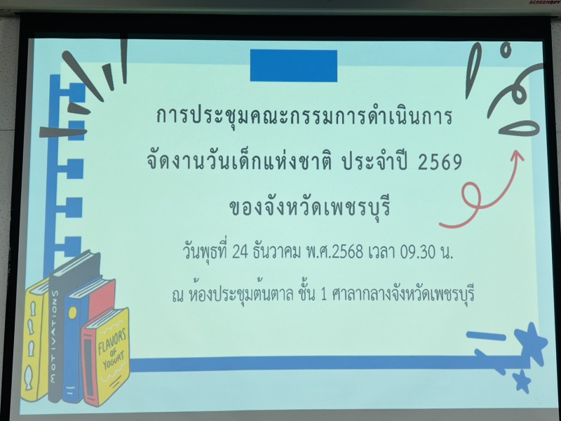 วันที่ 24 ธันวาคม 2568 นางสาวศิริวรรณ เครือเล็ก เกษตรและสหกรร์จังหวัดเพชรบุรี มอบหมายหัวหน้ากลุ่มสารสนเทศการเกษตร นางสาวสกลภัทร ไชยคำ นักวิเคราะห์นโยบายและแผนชำนาญการ เข้าร่วมประชุมคณะกรรมการดำเนินการจัดงานวันเด็กแห่งชาติ ประจำปี 2569 ของจังหวัดเพชรบุรี เพื่อให้การจัดงานเป็นไปด้วยความเรียบร้อย โดยมี นางวันเพ็ญ มังศรี รองผู้ว่าราชการจังหวัดเพชรบุรี เป็นประธาน ณ ห้องประชุมต้นตาล ชั้น 1 ศาลากลางจังหวัดเพชรบุรี (หลังเก่า) อำเภอเมืองเพชรบุรี จังหวัดเพชรบุรี
