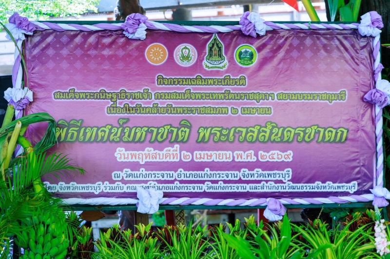 วันพฤหัสบดีที่ 2 เมษายน 2569 เวลา 09.30 น. นางสาวศิริวรรณ เครือเล็ก เกษตรและสหกรณ์จังหวัดเพชรบุรี มอบหมายเจ้าหน้าที่ฝ่ายบริหารทั่วไป เข้าร่วมพิธีเทศน์มหาชาติ พระเวสสันดรชาดก เฉลิมพระเกียรติสมเด็จพระกนิษฐาธิราชเจ้า กรมสมเด็จพระเทพรัตนราชสุดาฯ สยามบรมราชกุมารี เนื่องในวันคล้ายวันพระราชสมภพ 2 เมษายน โดยมี ร้อยตำรวจโทภพชนก ชลานุเคราะห์ ผู้ว่าราชการจังหวัดเพชรบุรี เป็นประธาน ณ อาคารโดม ลานวัฒนธรรม วัดแก่งกระจาน ต.แก่งกระจาน อ.แก่งกระจาน จ.เพชรบุรี