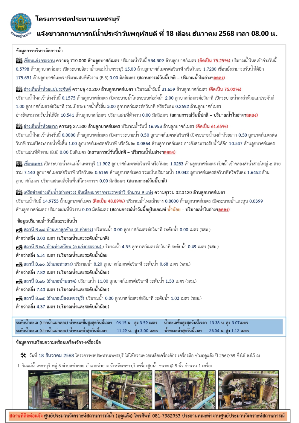 สถานการณ์ประจำวันที่ 18 ธันวาคม 2568