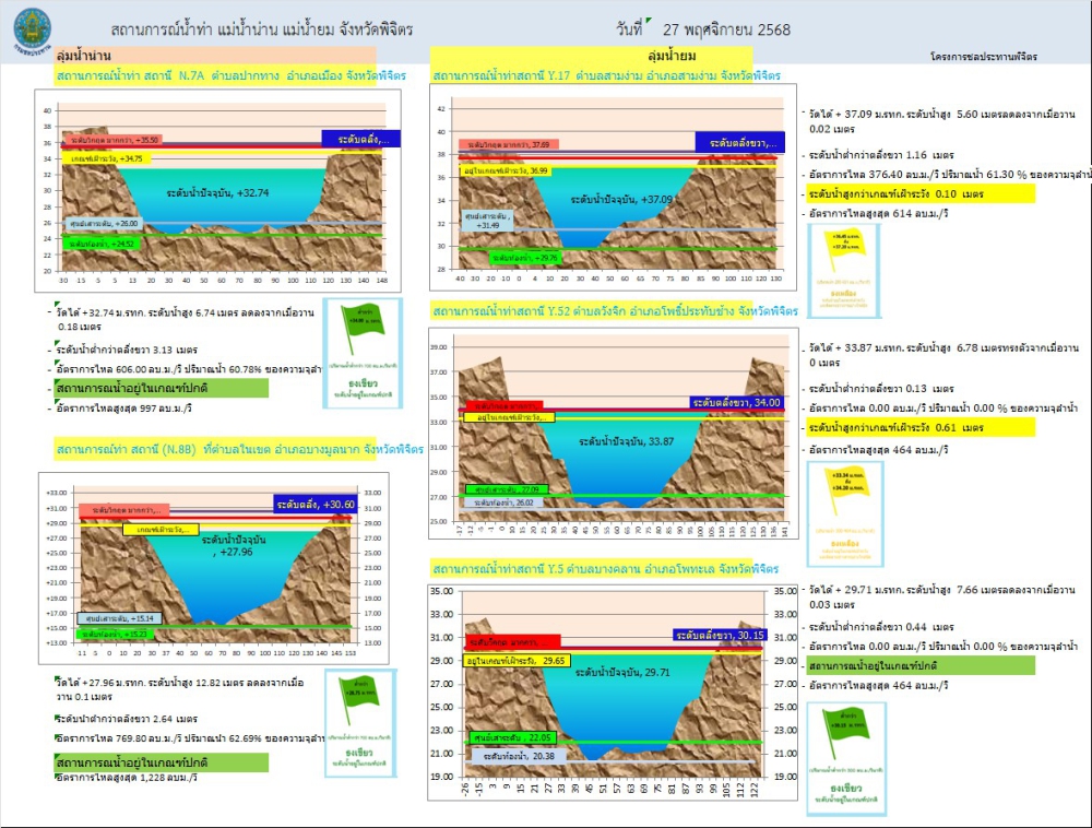 รายงานสถานการณ์น้ำท่า ในจังหวัดพิจิตร ประจำวันที่ 28 พฤศจิกายน 2568