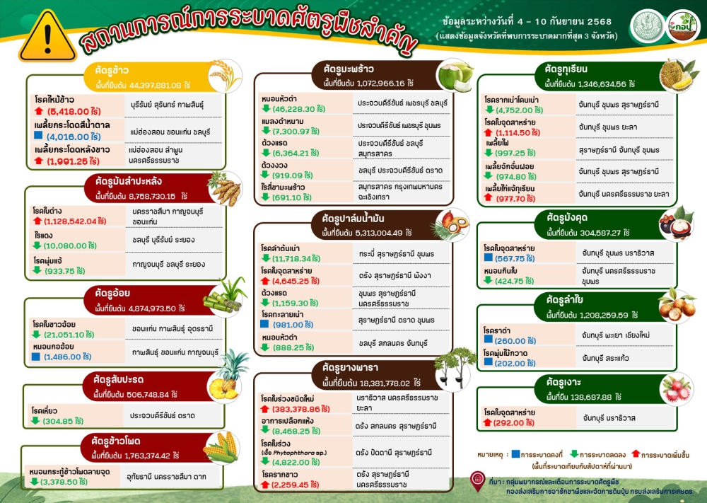 สถานการณ์การระบาดศัตรูพืชสำคัญ ระหว่างวันที่ 4-10 กันยายน 2568