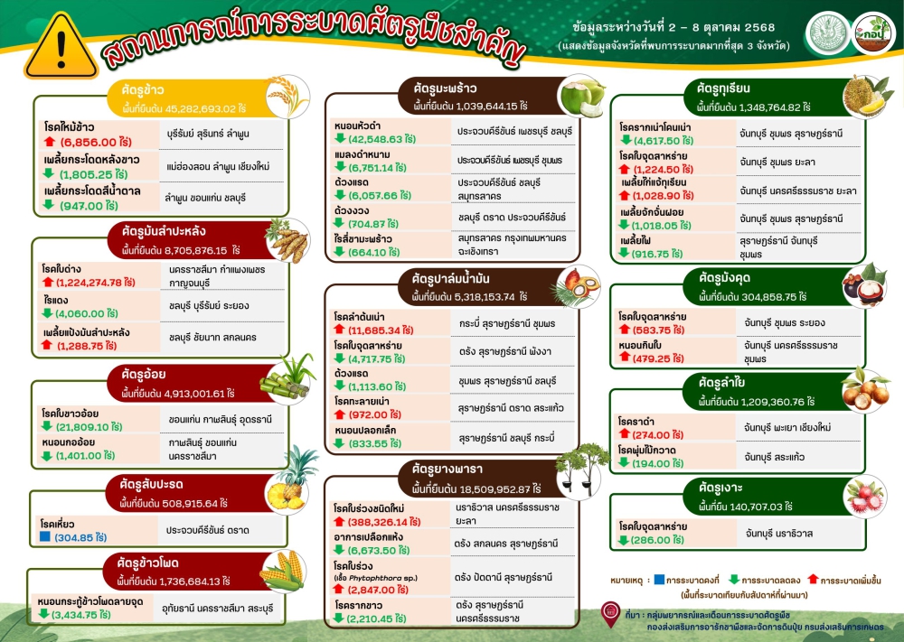 สถานการณ์การระบาดศัตรูพืชสำคัญ ระหว่างวันที่ 2-8 ตุลาคม 2568