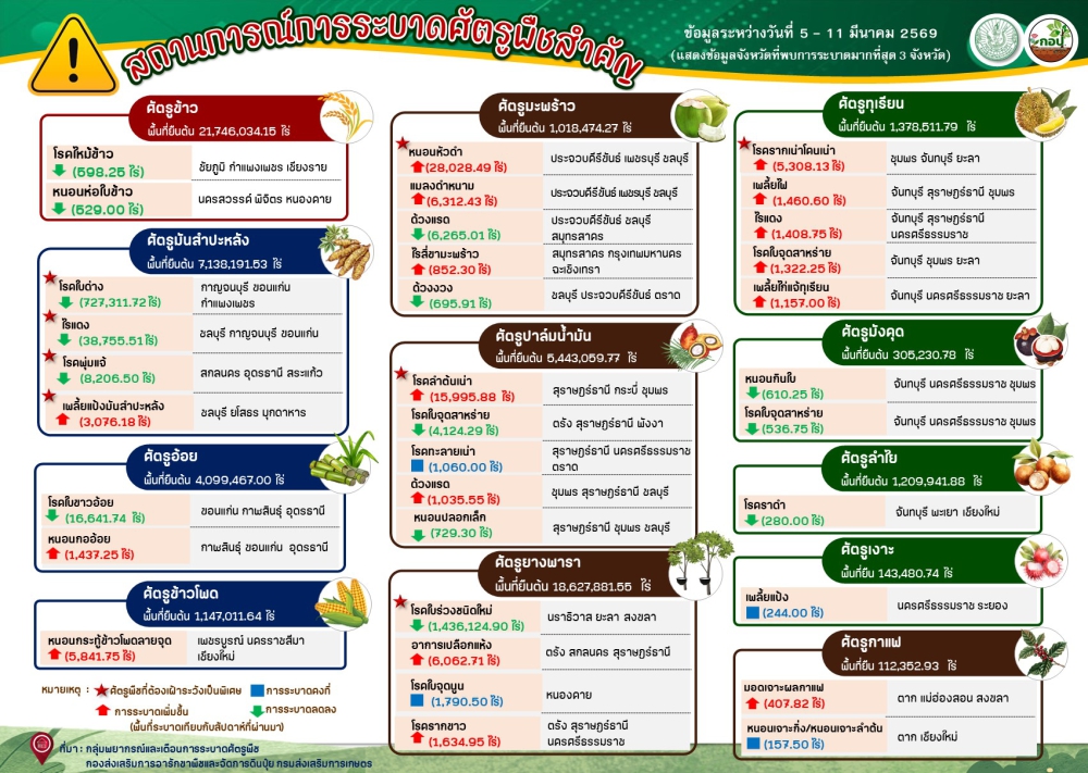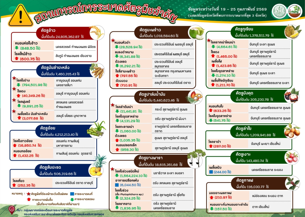 ถานการณ์การระบาดศัตรูพืชสำคัญ ระหว่างวันที่ 19-25 กุมภาพันธ์ 2569
