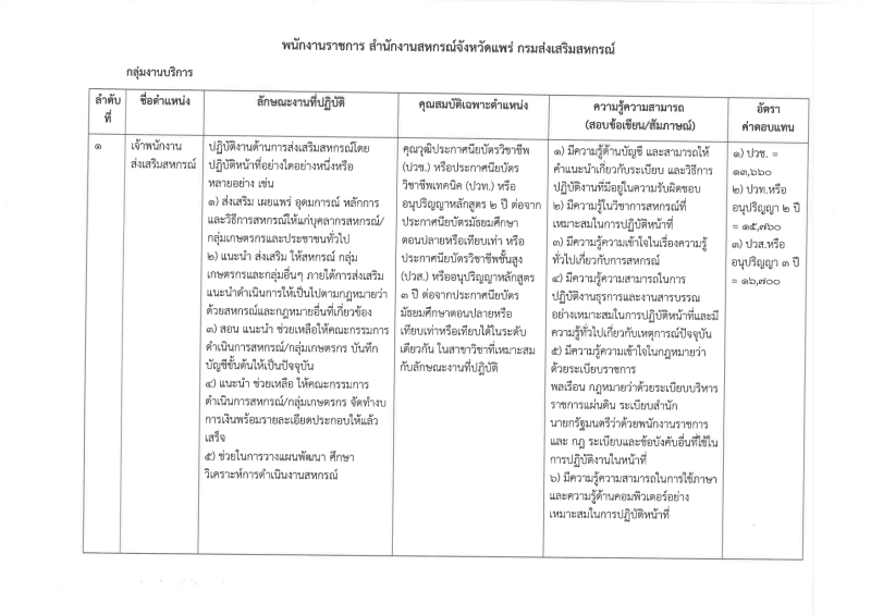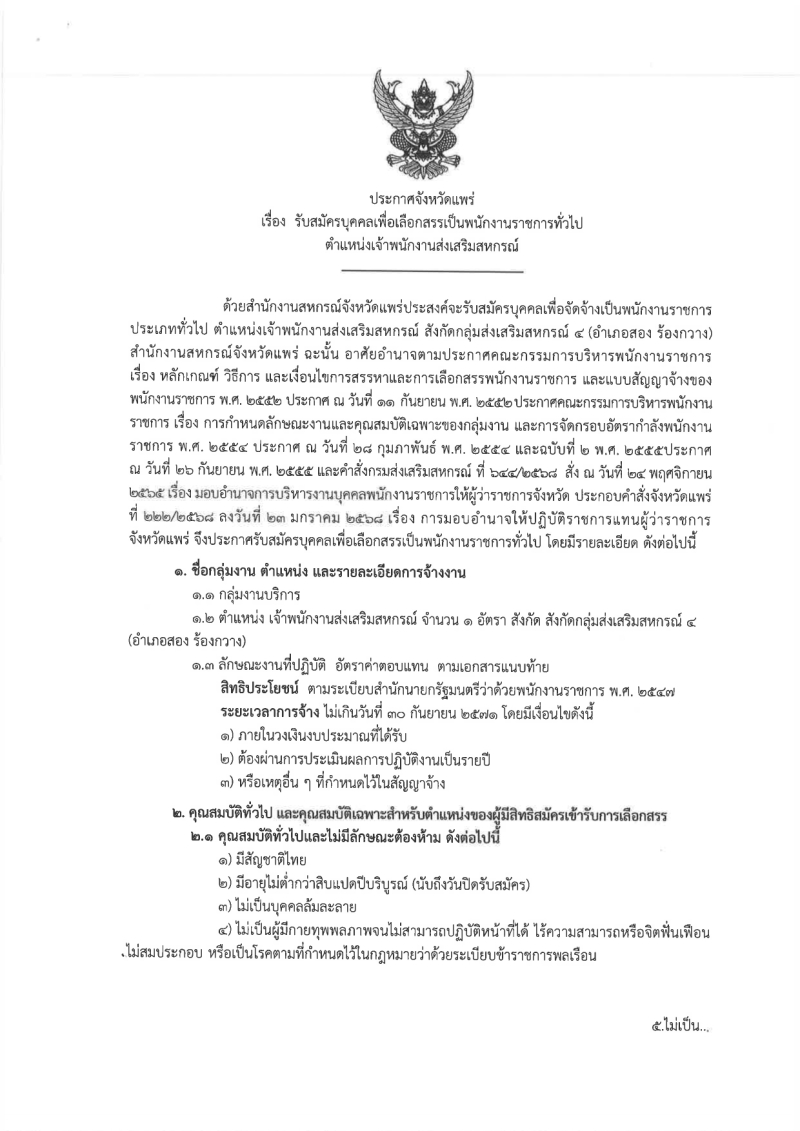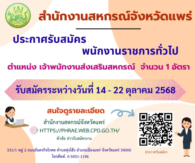 รับสมัครบุคคลเพื่อคัดเลือกสรรเป็นพนักงานราชการทั่วไป ตำแหน่งเจ้าพนักงานส่งเสริมสหกรณ์
