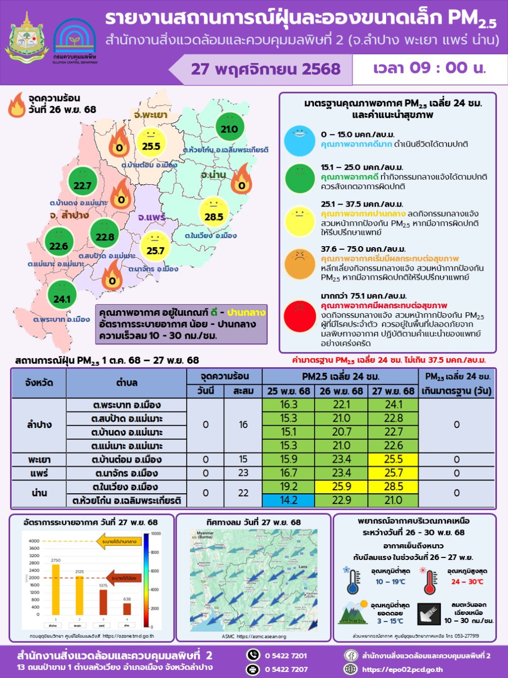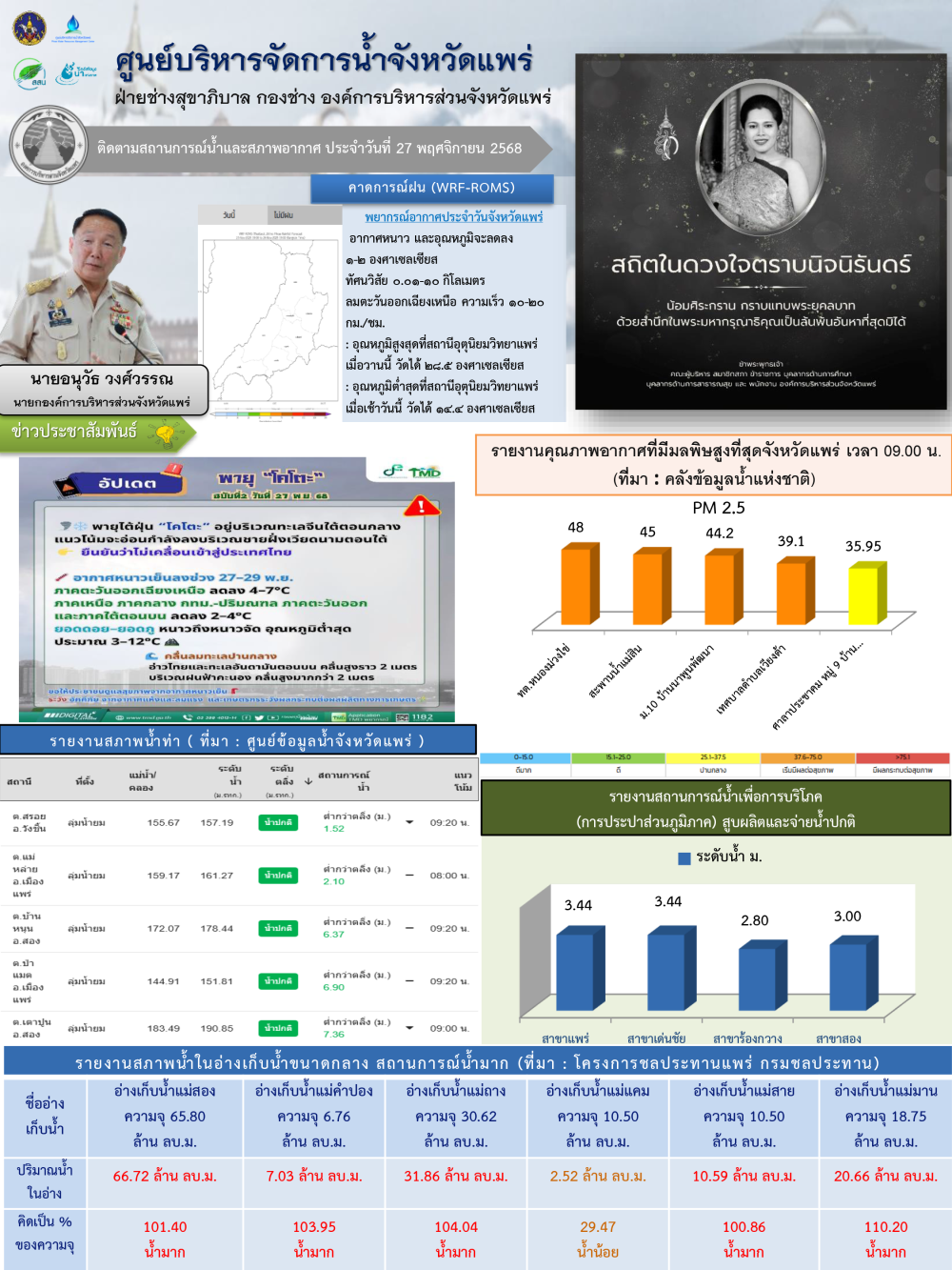 ศูนย์ติดตามและแก้ไขปัญหาภัยพิบัติด้านการเกษตรจังหวัดแพร่ (ประจำวันที่ 27 พฤศจิกายน 2568)