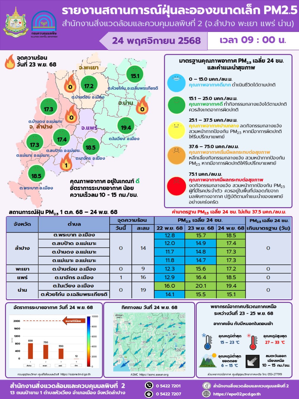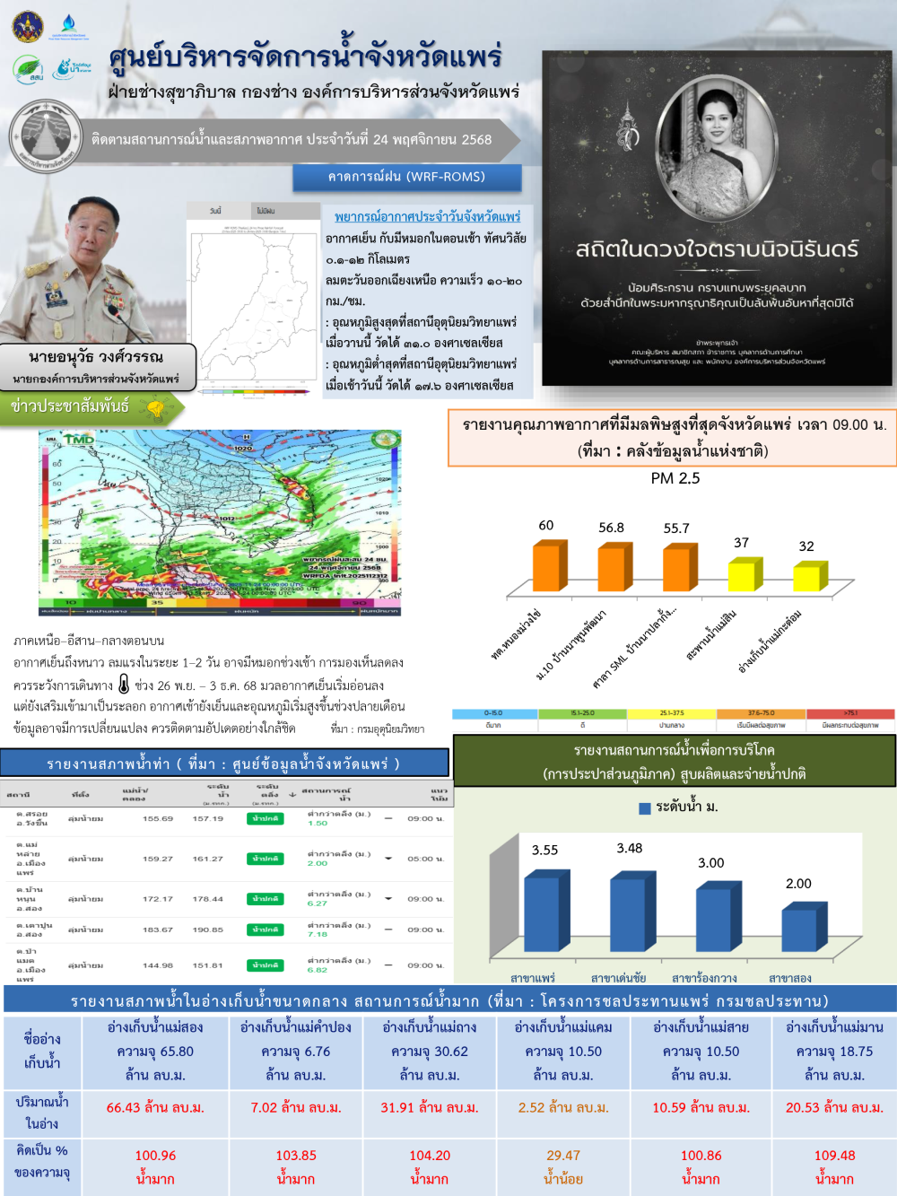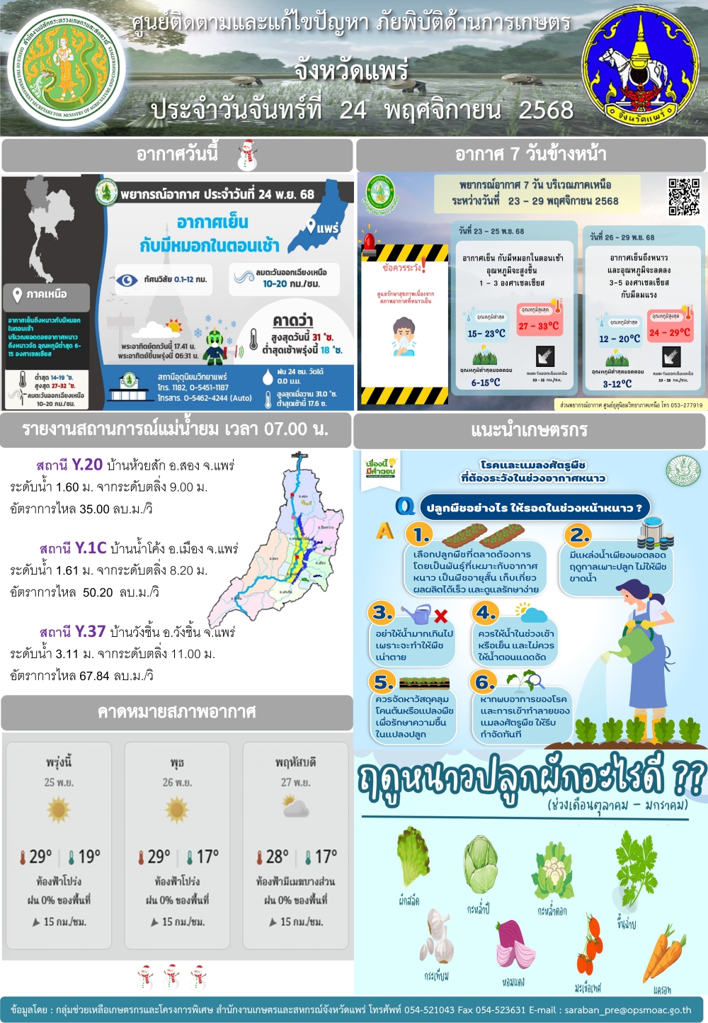 ศูนย์ติดตามและแก้ไขปัญหาภัยพิบัติด้านการเกษตรจังหวัดแพร่ (ประจำวันที่ 24 พฤศจิกายน 2568)