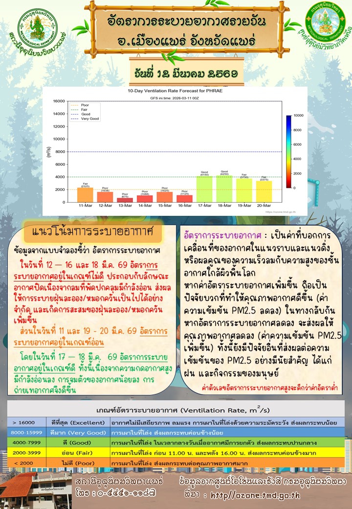ศูนย์ติดตามและแก้ไขปัญหาภัยพิบัติด้านการเกษตรจังหวัดแพร่ (ประจำวันที่ 12 มีนาคม 2569)