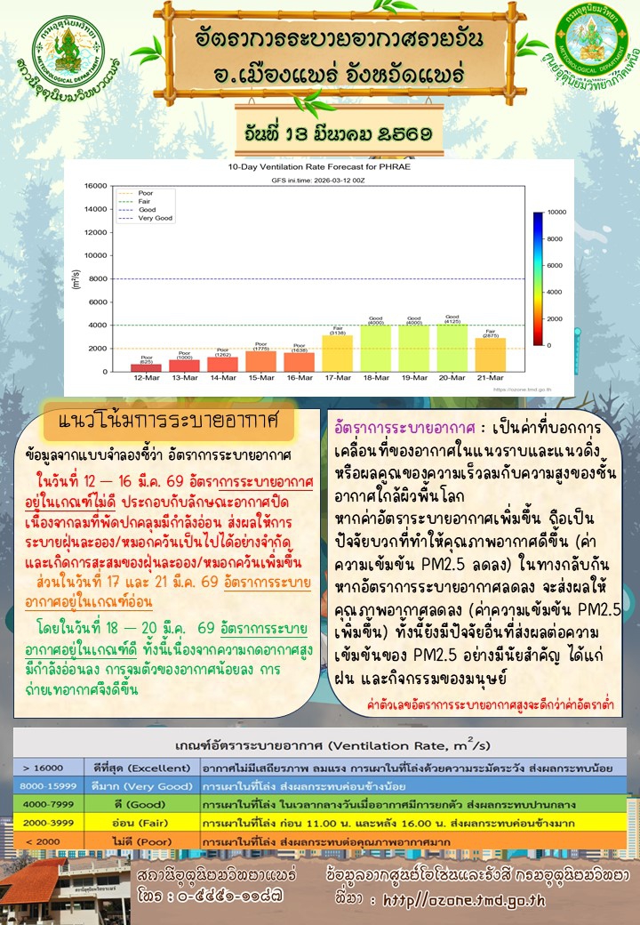 ศูนย์ติดตามและแก้ไขปัญหาภัยพิบัติด้านการเกษตรจังหวัดแพร่ (ประจำวันที่ 13 มีนาคม 2569)