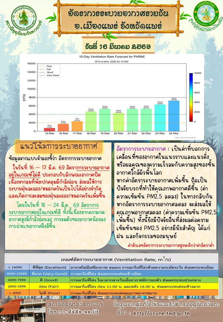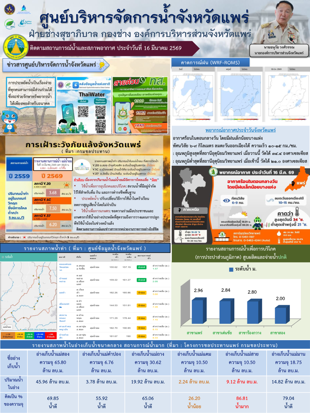 ศูนย์ติดตามและแก้ไขปัญหาภัยพิบัติด้านการเกษตรจังหวัดแพร่ (ประจำวันที่ 16 มีนาคม 2569)