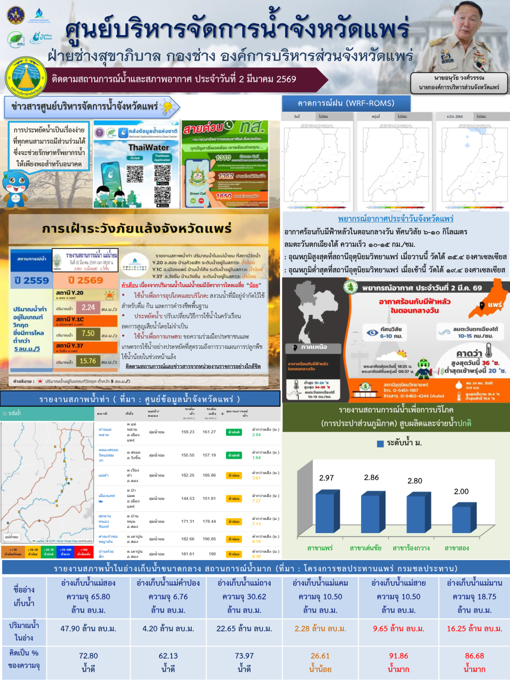 ศูนย์ติดตามและแก้ไขปัญหาภัยพิบัติด้านการเกษตรจังหวัดแพร่ (ประจำวันที่ 2 มีนาคม 2569)