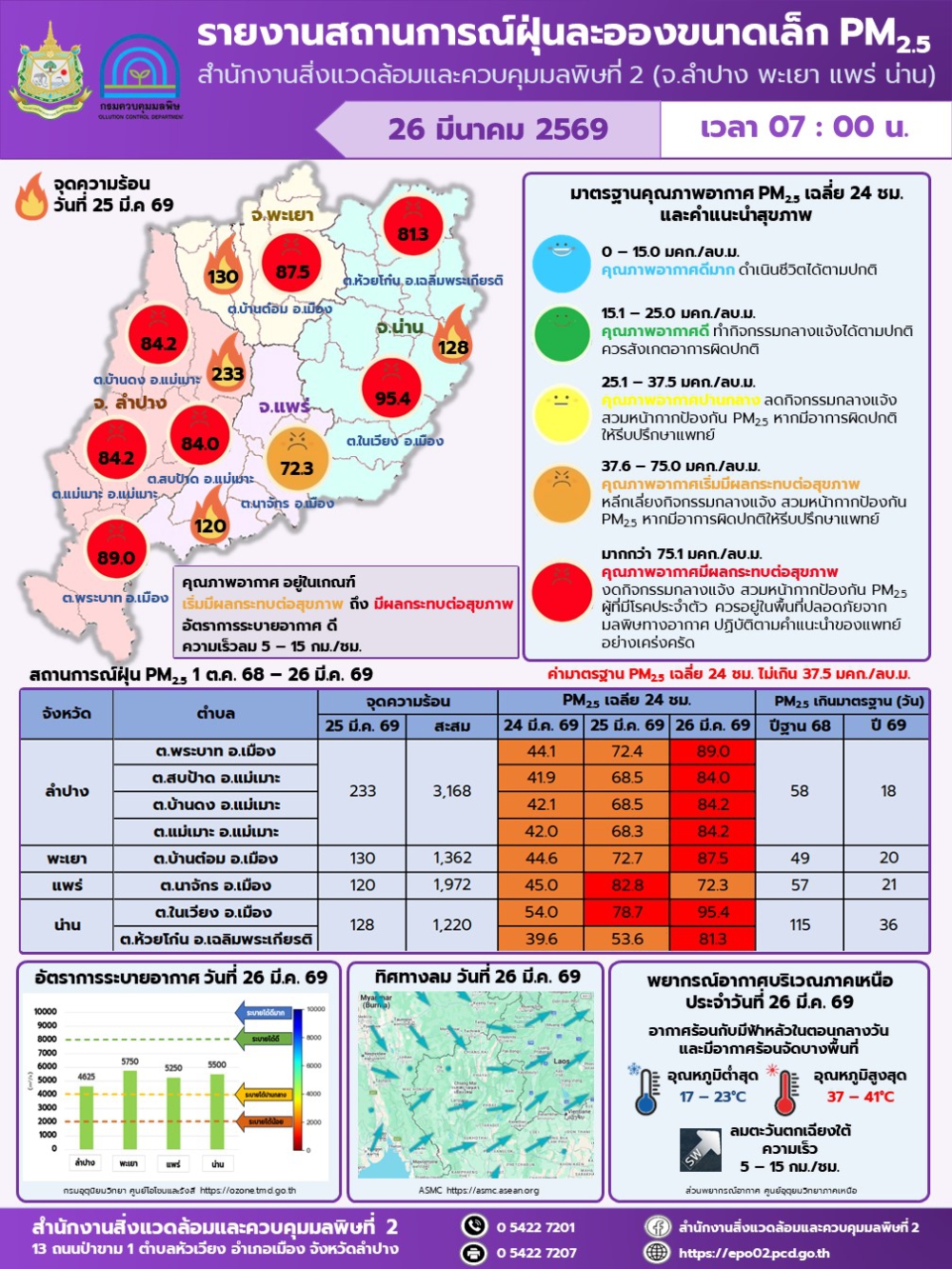 ศูนย์ติดตามและแก้ไขปัญหาภัยพิบัติด้านการเกษตรจังหวัดแพร่ (ประจำวันที่ 26 มีนาคม 2569)