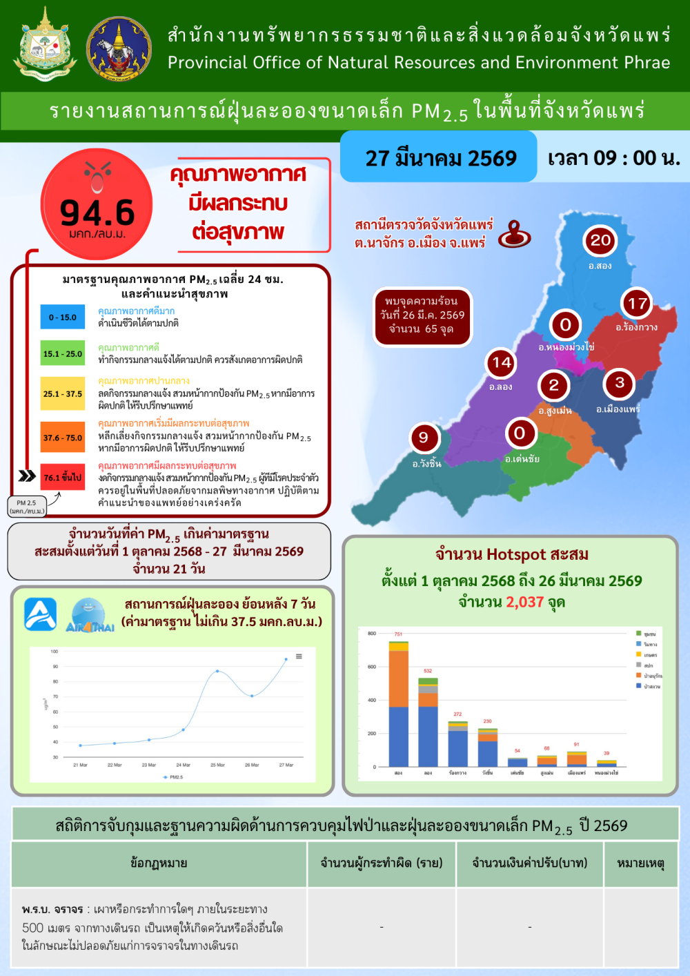 ศูนย์ติดตามและแก้ไขปัญหาภัยพิบัติด้านการเกษตรจังหวัดแพร่ (ประจำวันที่ 27 มีนาคม 2569)