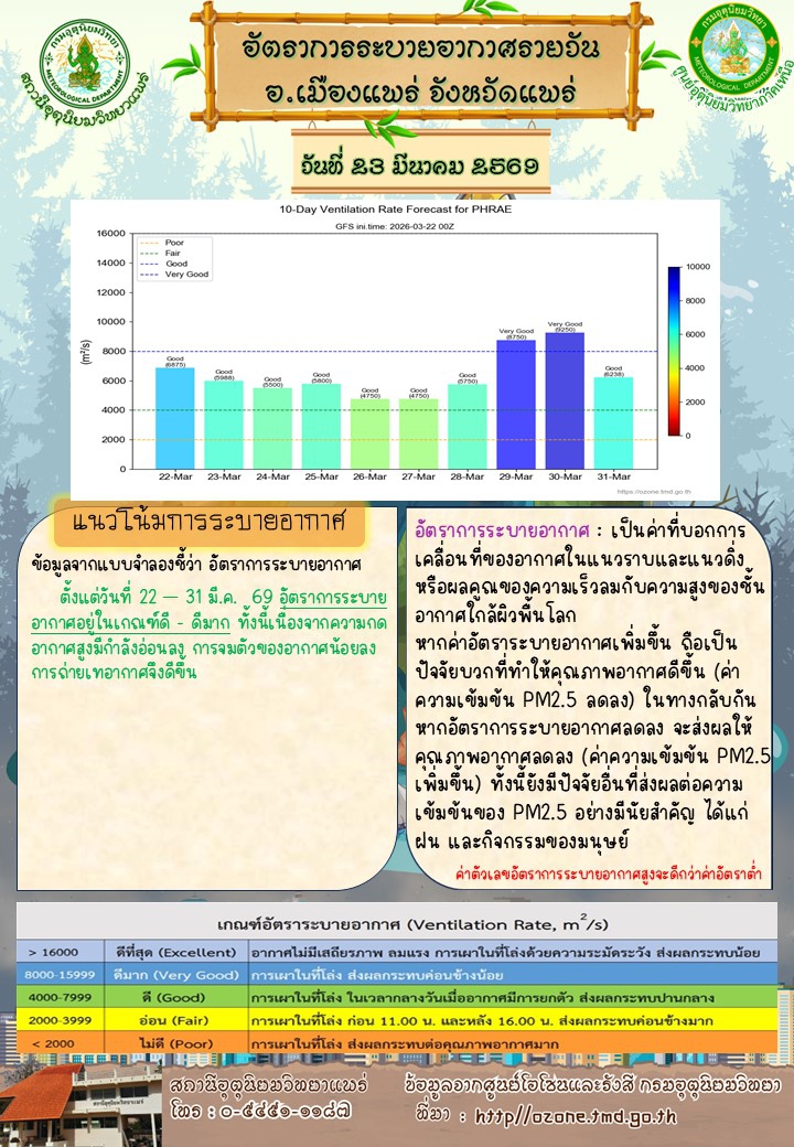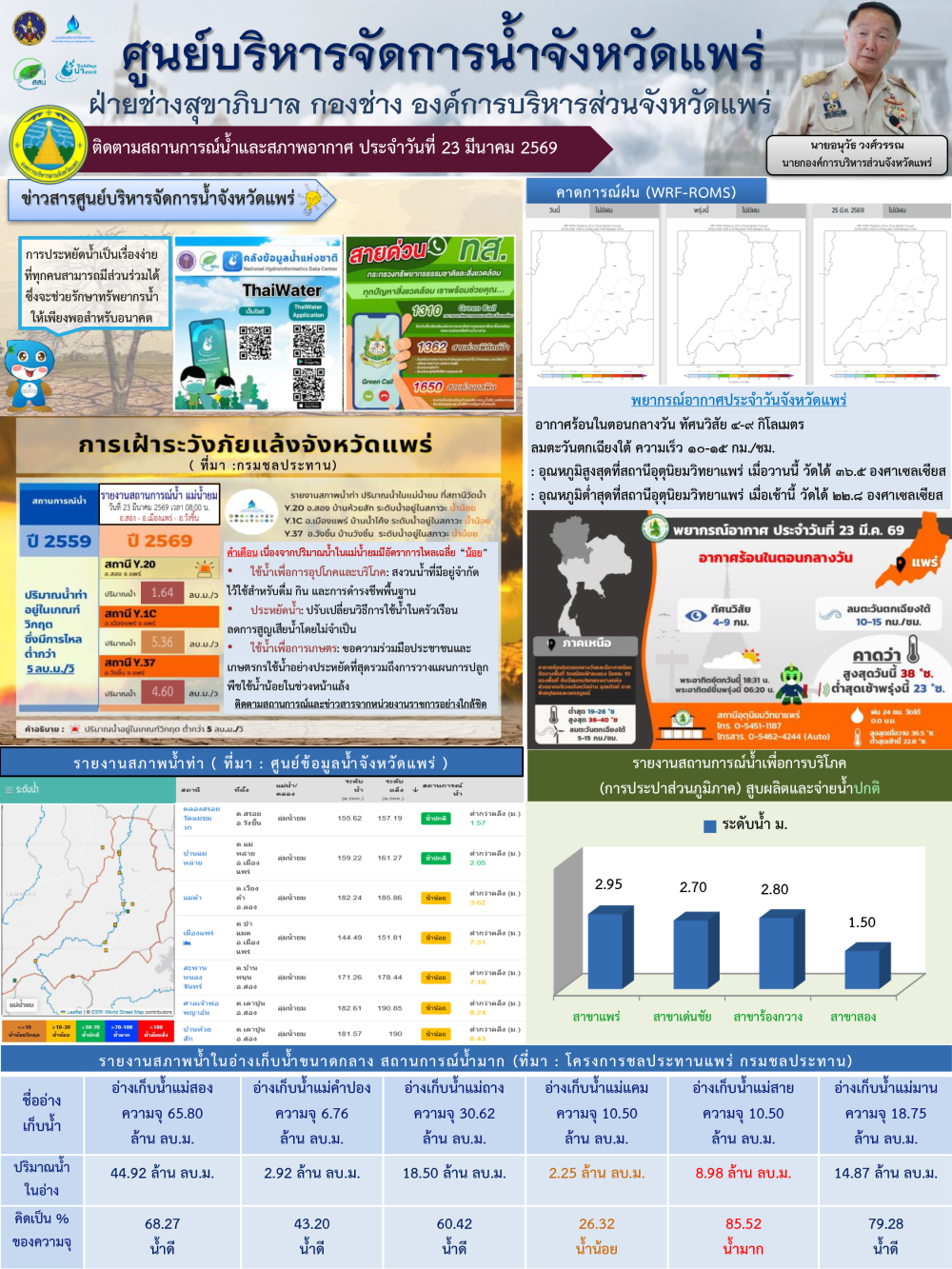 ศูนย์ติดตามและแก้ไขปัญหาภัยพิบัติด้านการเกษตรจังหวัดแพร่ (ประจำวันที่ 23 มีนาคม 2569)