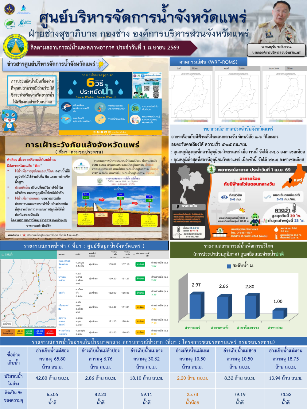 ศูนย์ติดตามและแก้ไขปัญหาภัยพิบัติด้านการเกษตรจังหวัดแพร่ (ประจำวันที่ 1 เมษายน 2569)