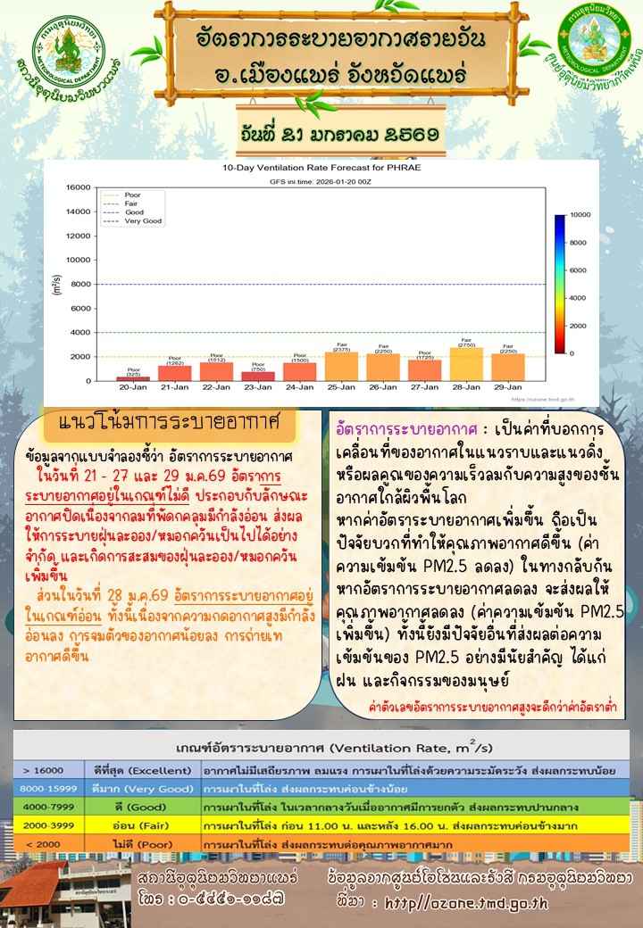 ศูนย์ติดตามและแก้ไขปัญหาภัยพิบัติด้านการเกษตรจังหวัดแพร่ (ประจำวันที่ 21 มกราคม 2569)