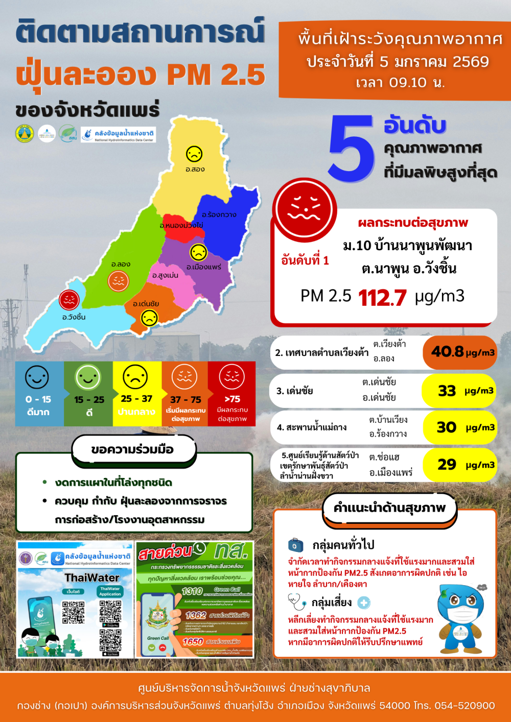 ศูนย์ติดตามและแก้ไขปัญหาภัยพิบัติด้านการเกษตรจังหวัดแพร่ (ประจำวันที่ 5 มกราคม 2569)