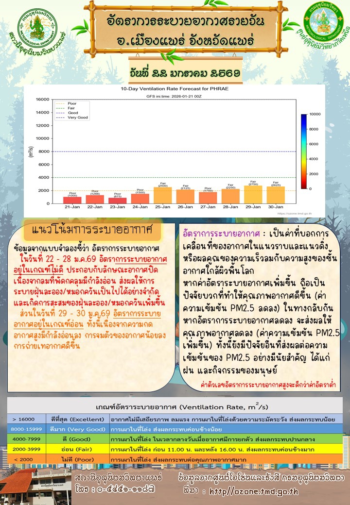 ศูนย์ติดตามและแก้ไขปัญหาภัยพิบัติด้านการเกษตรจังหวัดแพร่ (ประจำวันที่ 22 มกราคม 2569)