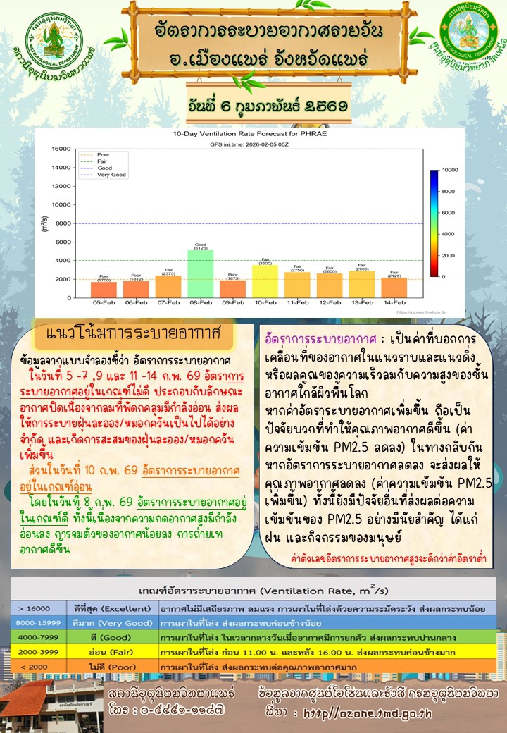 ศูนย์ติดตามและแก้ไขปัญหาภัยพิบัติด้านการเกษตรจังหวัดแพร่ (ประจำวันที่ 6 กุมภาพันธ์ 2569)
