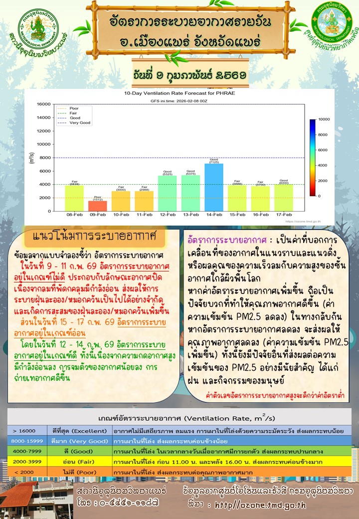 ศูนย์ติดตามและแก้ไขปัญหาภัยพิบัติด้านการเกษตรจังหวัดแพร่ (ประจำวันที่ 9 กุมภาพันธ์ 2569)