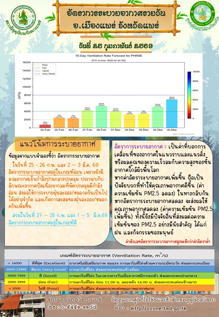 ศูนย์ติดตามและแก้ไขปัญหาภัยพิบัติด้านการเกษตรจังหวัดแพร่ (ประจำวันที่ 25 กุมภาพันธ์ 2569)