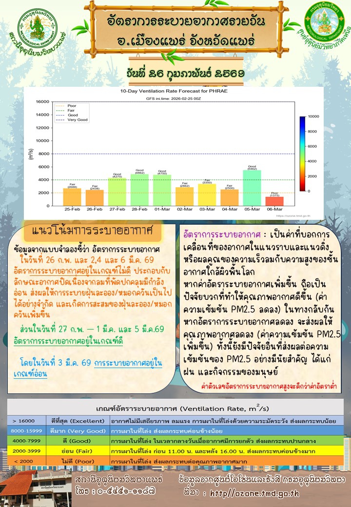 ศูนย์ติดตามและแก้ไขปัญหาภัยพิบัติด้านการเกษตรจังหวัดแพร่ (ประจำวันที่ 26 กุมภาพันธ์ 2569)
