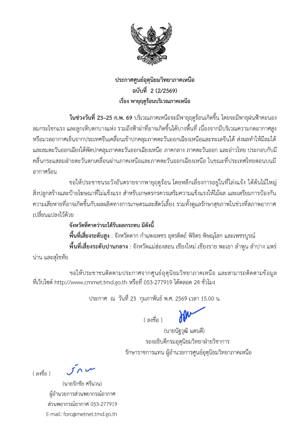 ศูนย์ติดตามและแก้ไขปัญหาภัยพิบัติด้านการเกษตรจังหวัดแพร่ (ประจำวันที่ 24 กุมภาพันธ์ 2569)