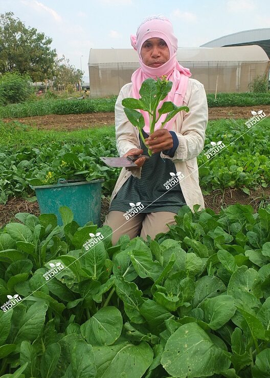 คุณป้าจตุพร วงเวียน เกษตรกรปลูกผักกวางตุ้งอินทรีย์