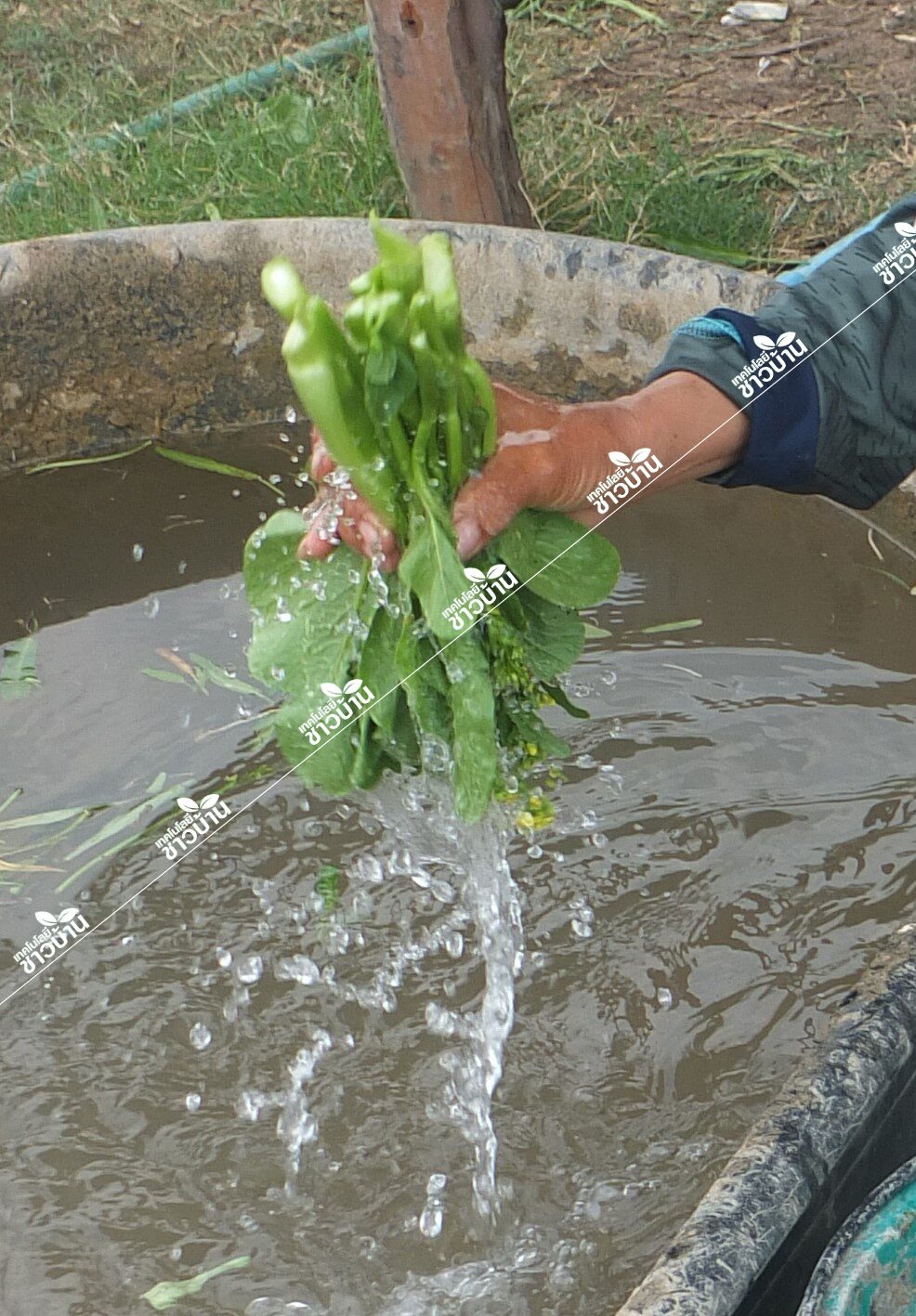 ล้างผักกวางตุ้งด้วยน้ำให้สะอาด