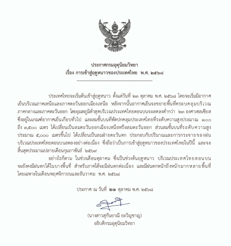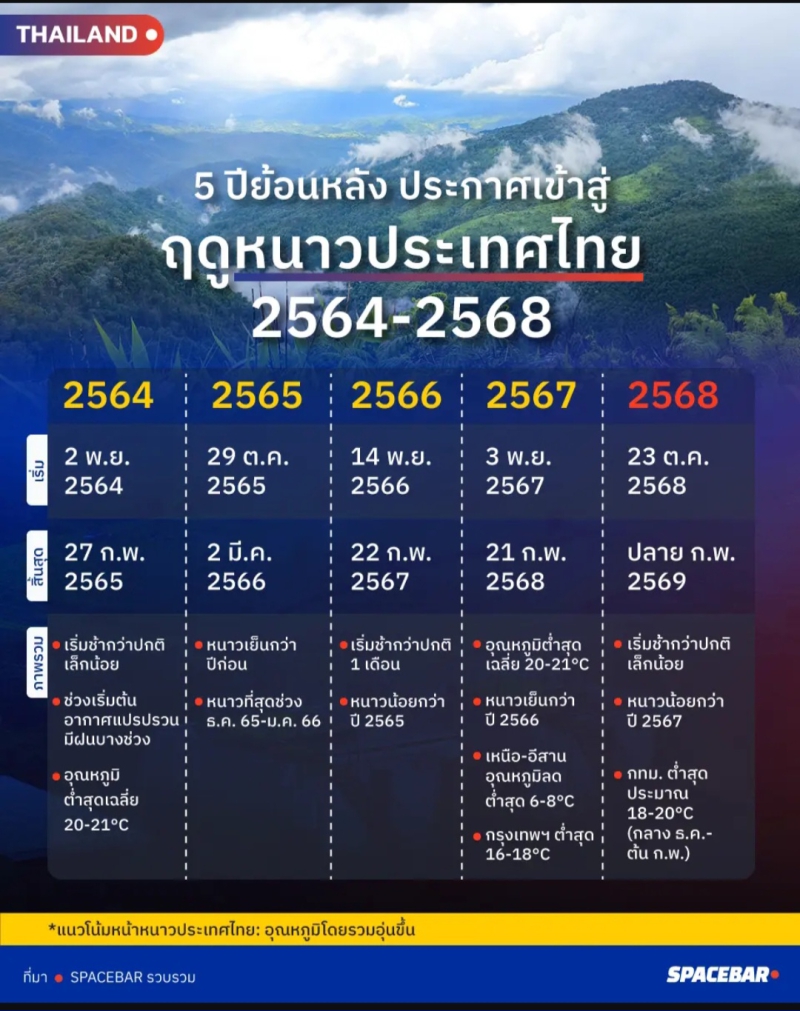 ประเทศไทยเริ่มเข้าสู่ฤดูหนาวตั้งแต่ 23 ตุลาคม 2568