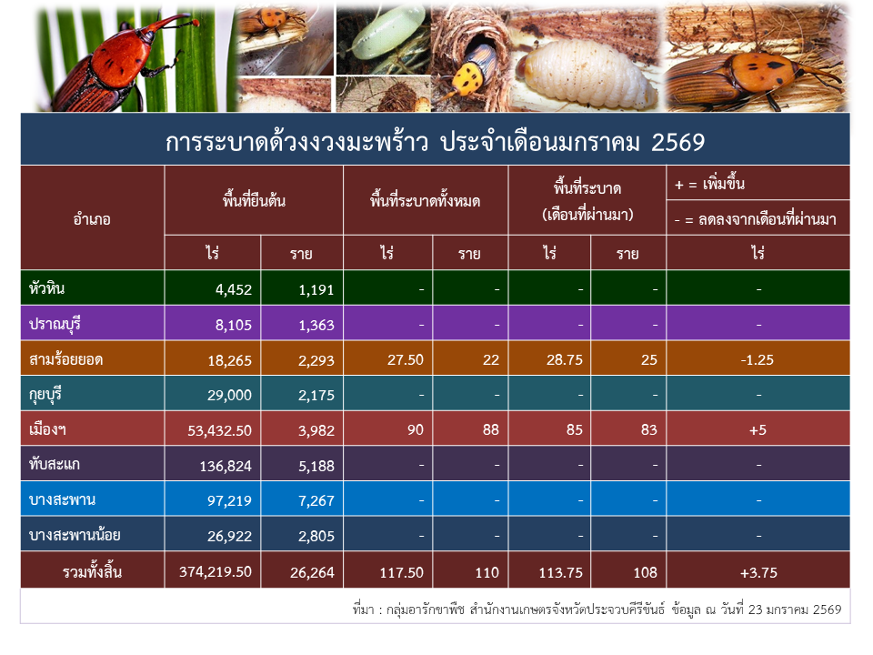 สรุปสถานการณ์การระบาดศัตรูมะพร้าวในพื้นที่จังหวัดประจวบคีรีขันธ์ ประจำเดือนมกราคม 2569
