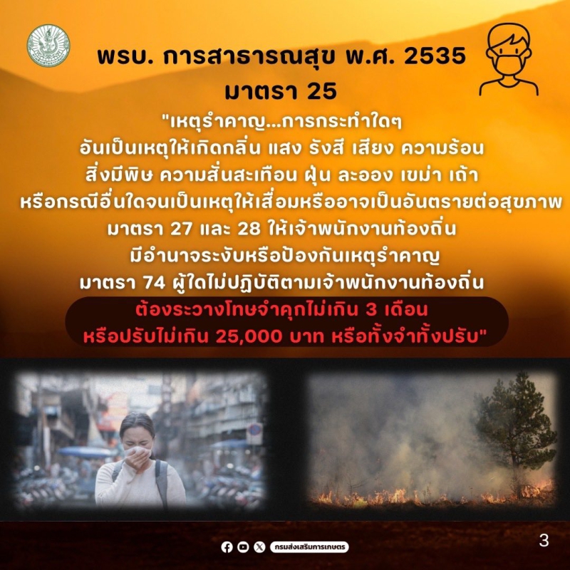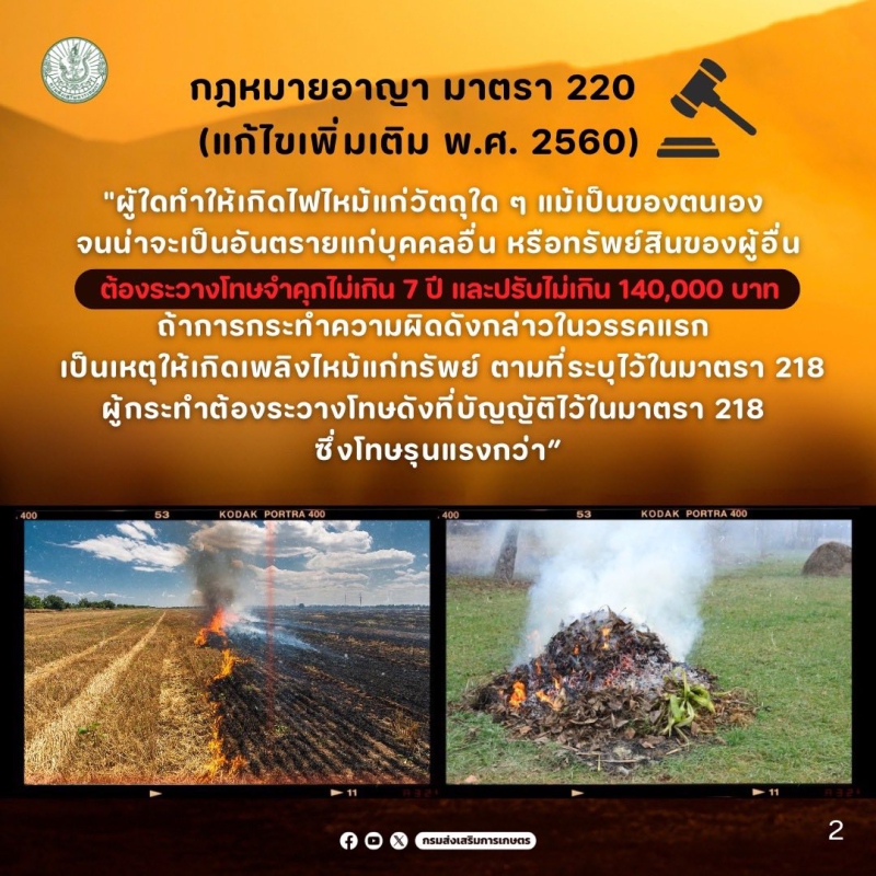 ถึงแม้ว่า ประกาศของกระทรวงเกษตรและสหกรณ์ เริ่มต้นวันที่ 1 กุมภาพันธ์ - 31 มีนาคม 2569 ห้ามเผาพื้นที่การเกษตรทุกกรณี หากฝ่าฝืนจะไม่ได้รับการสนับสนุนช่วยเหลือโครงการต่างๆจากกระทรวงเกษตรฯ (แต่ยังคงได้รับการเยียวยากรณีภัยพิบัติเช่นเดิม)